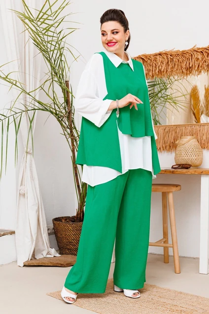 Костюм брючный 3-2510 зелёный-1 Romanovich style