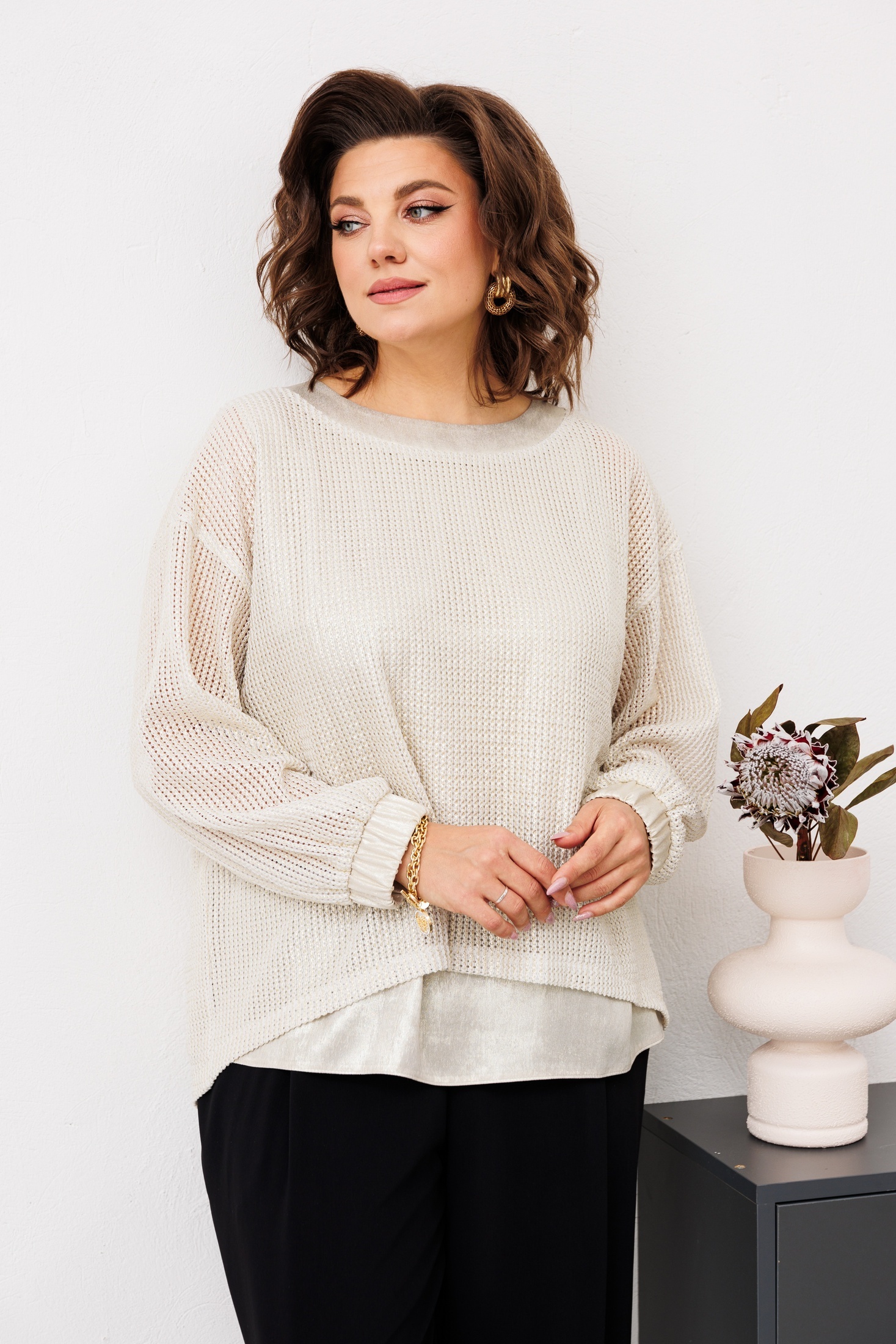 Костюм брючный 3-2734 золото Romanovich style — это идеальный выбор для торжественных мероприятий. Коллекция бренда Romanovich style представляет современный подход к классике. Изготовленный из полиэстера и хлопка, костюм гарантирует комфорт и лёгкость носки. Джемпер с фигурным низом и спущенным плечом создаёт стильный и расслабленный образ, а втачные длинные рукава на эластичной манжете добавляют элегантности. Топ прямого силуэта длиной до линии бёдер подчёркивает женственность образа. Брюки с широким кроем и боковыми карманами, выполненные из полиэстера и вискозы, обеспечивают свободу движений. Костюм представлен в лаконичном чёрном цвете, идеально подходящем для осенне-зимнего сезона.
