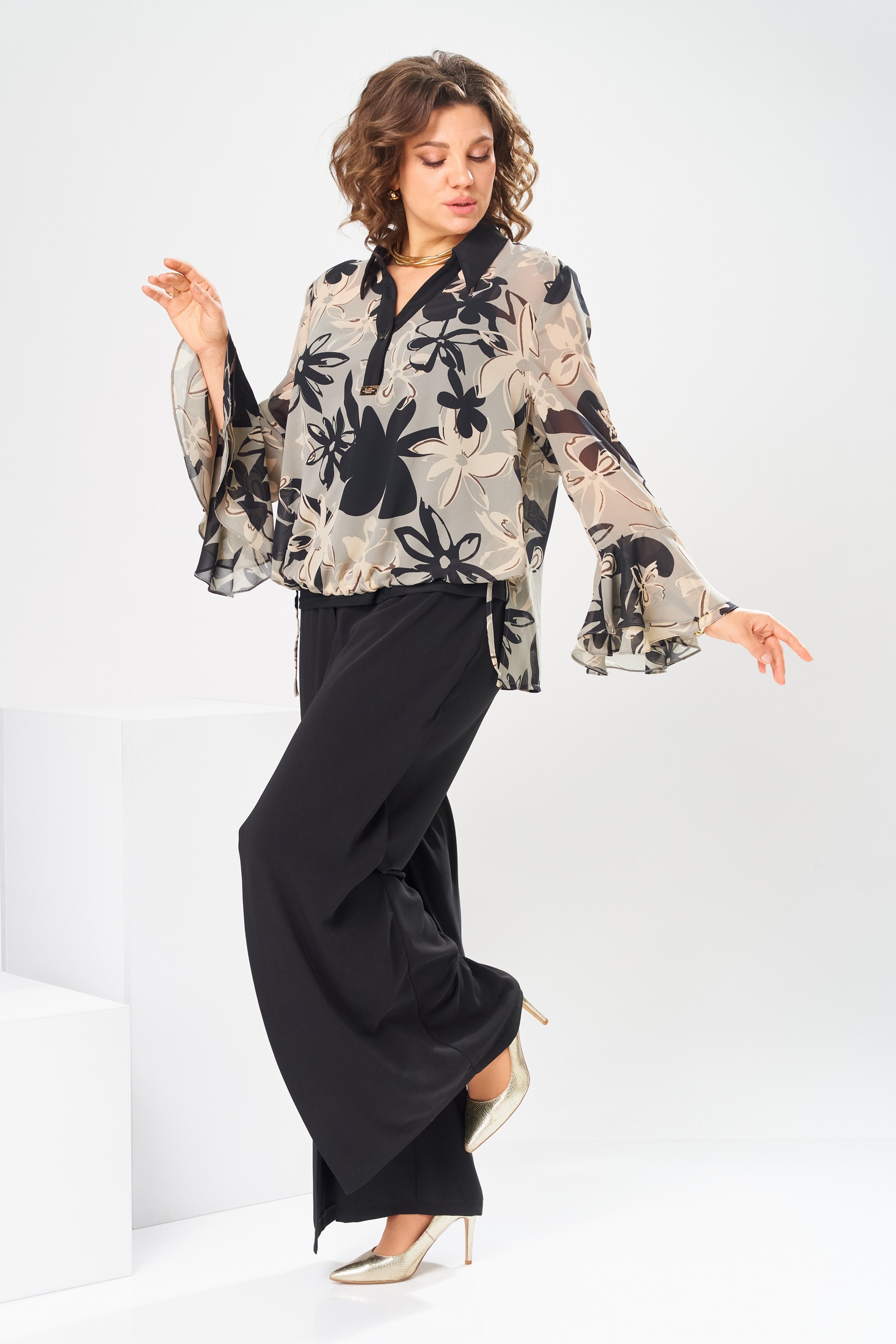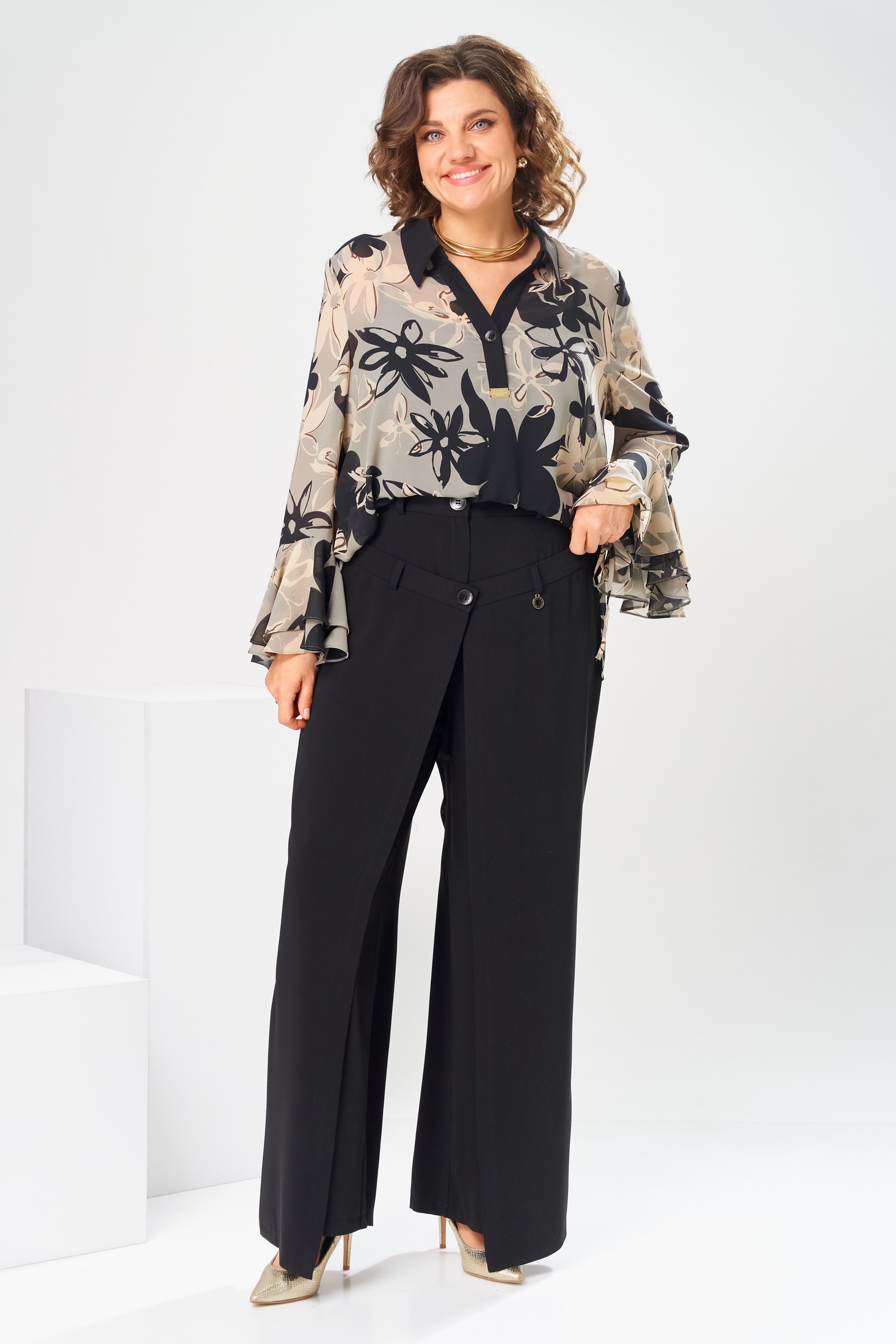 - Брючные костюмы больших размеров с длинным рукавом