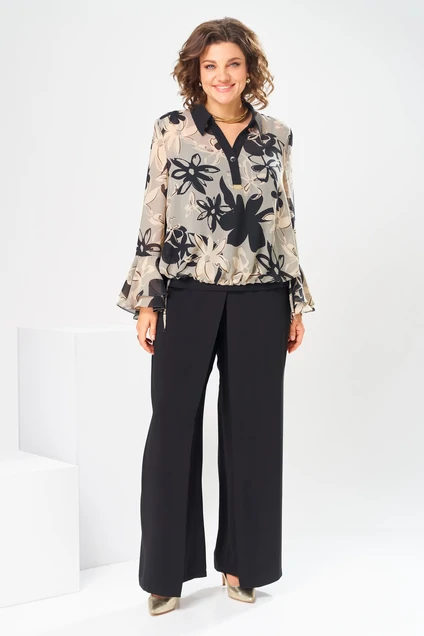 Костюм брючный 3-2869 черный + беж Romanovich style