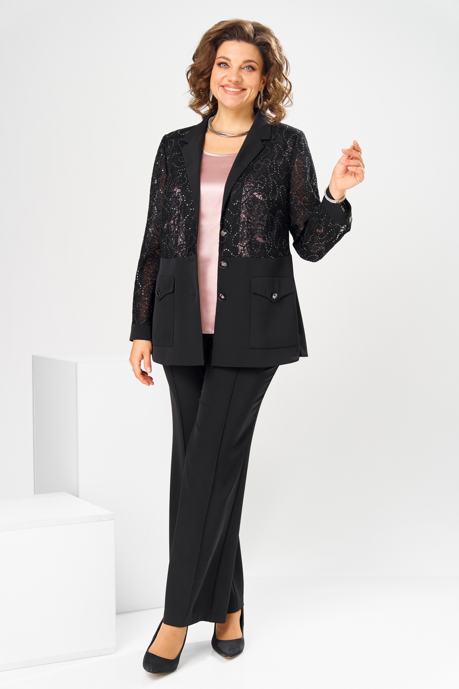 Костюм брючный 3-2886 чёрный Romanovich style
