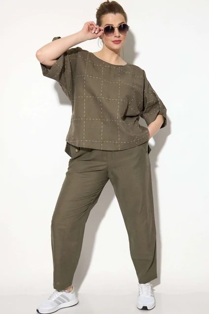 Блузон свободного кроя. Брюки с функциональными карманами, пояс на резинке.