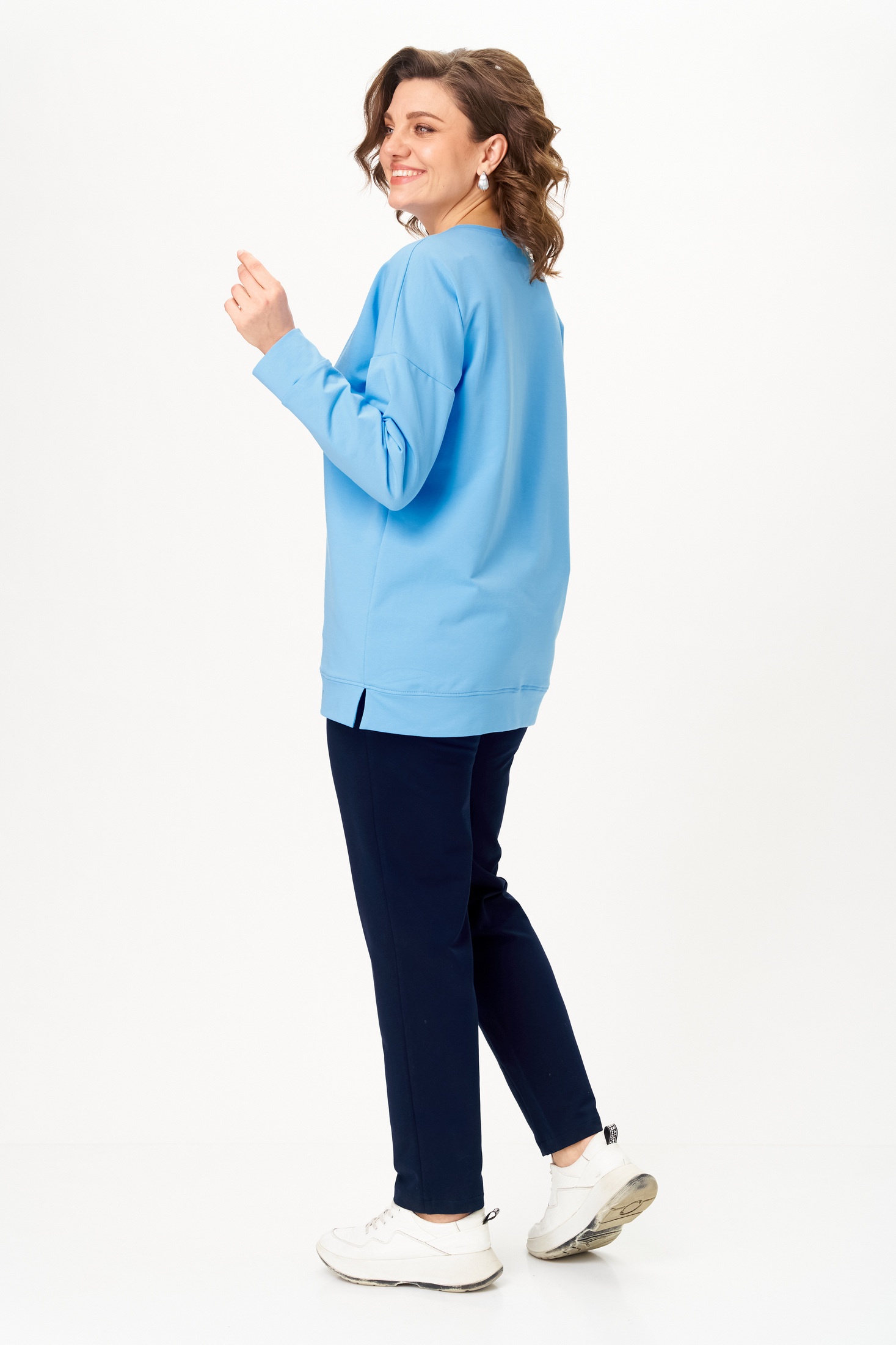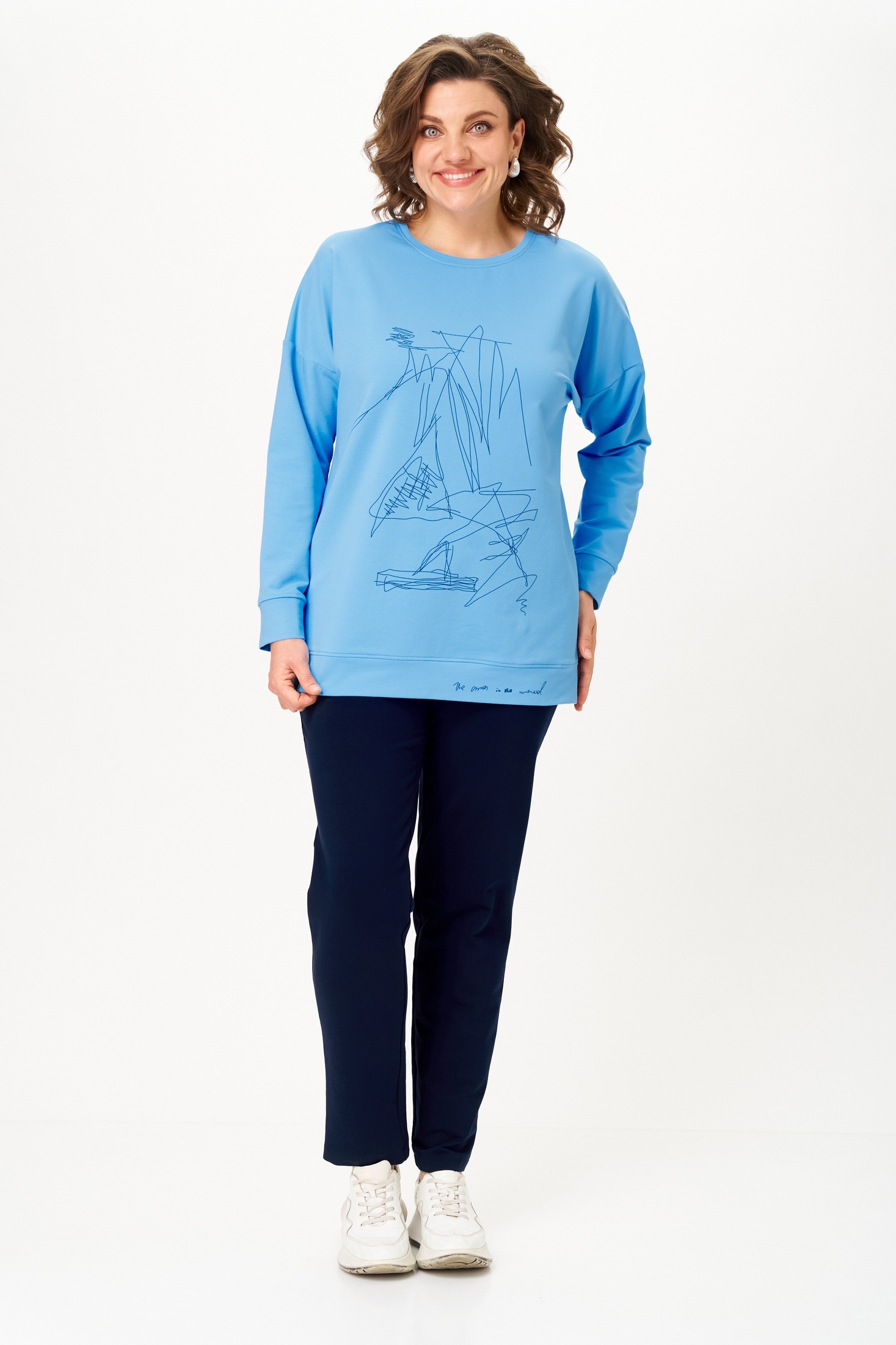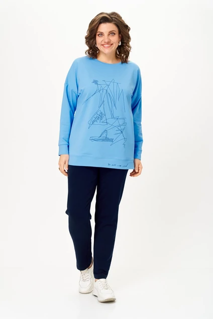 Костюм брючный 2061-3 STEFANY позволит вам выразить свою индивидуальность и комфорт одновременно. Коллекция бренда STEFANY предлагает двухпредметный комплект, состоящий из свитшота и брюк, выполненный из хлопка и спандекса, что гарантирует комфорт и свободу движений. Свитшот с длинным спущенным рукавом и круглой горловиной обеспечивает уют, а печать на полочке добавляет оригинальности. Брюки заужены к низу с поясом на резинке и боковыми карманами для дополнительного удобства. Комплект идеально подходит для осенне-весеннего сезона и станет отличным выбором для повседневных прогулок. Яркий голубой и синий цвет делает его стильным решением для современных женщин. Длина изделия 72 см и длина брюк 102 см подходят для создания гармоничного образа.