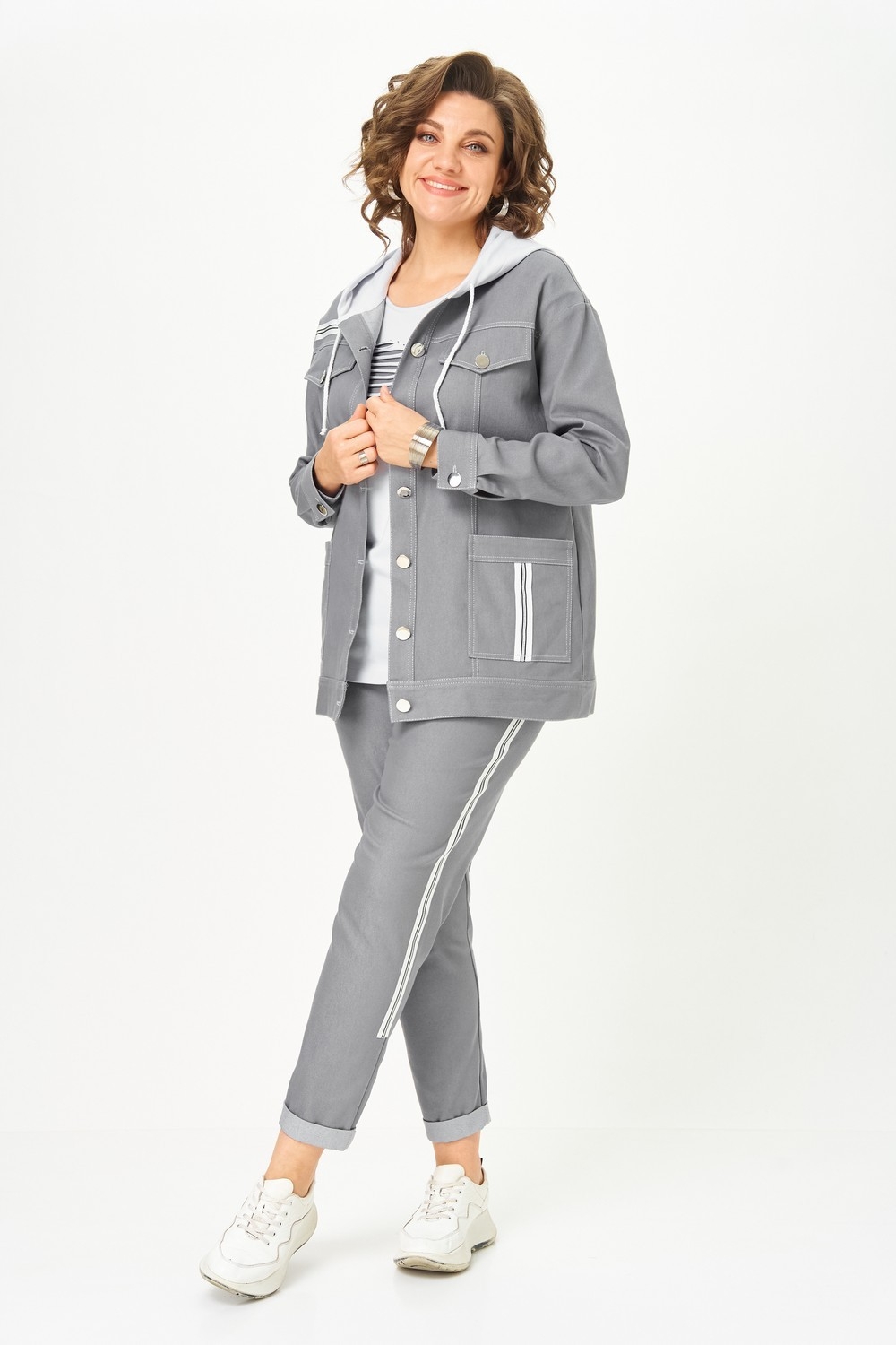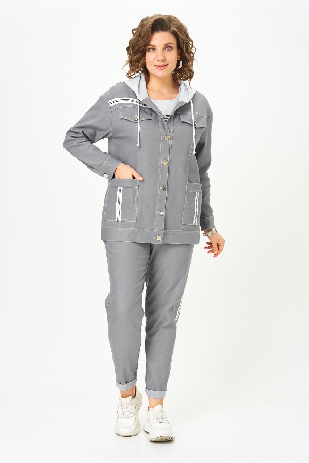 Костюм брючный 1569 серый Svetlana Style представляет собой женский трёхпредметный комплект, включающий куртку, тунику и брюки. Коллекция бренда Svetlana Style предлагает оригинальный фасон с горизонтальными кокетками и декоративными клапанами на куртке. Туника украшена аппликацией, добавляющей уникальности. Брюки заужены книзу с практичными карманами. Изготовленный из смеси полиэстера, вискозы и спандекса, костюм обладает прочностью и комфортом. Серый цвет костюма идеально подходит для весенне-летнего сезона, а капюшон и накладные карманы обеспечивают дополнительное удобство. Это отличный выбор для повседневного использования благодаря его универсальному дизайну.