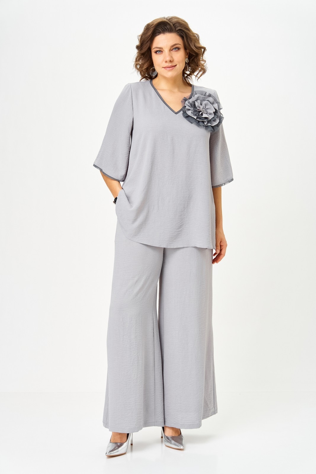 Костюм брючный 1933 серый Svetlana Style — это стильное решение для любого случая. Коллекция бренда Svetlana Style предлагает легкий и струящийся костюм, выполненный из полиэстера, вискозы и спандекса. Он включает в себя блузку A-силуэта с рукавами длиной 3/4 и расширением по низу, украшенную съёмным объёмным цветком. Особое внимание привлекает v-образная горловина и сетчатая бейка по горловине и низу рукавов. Брюки палаццо с притачным поясом на широкой резинке и скошенными карманами спереди подойдут для всех типов фигур. Длина блузки по спинке составляет 80 см, а брюк — 104 см. Отлично подойдет для весенне-летнего сезона, добавляя свежий серый цвет в ваш гардероб.