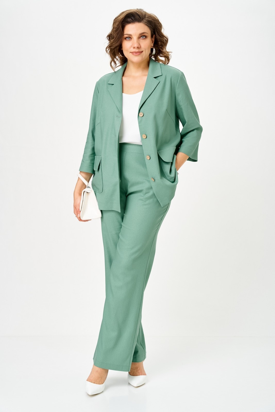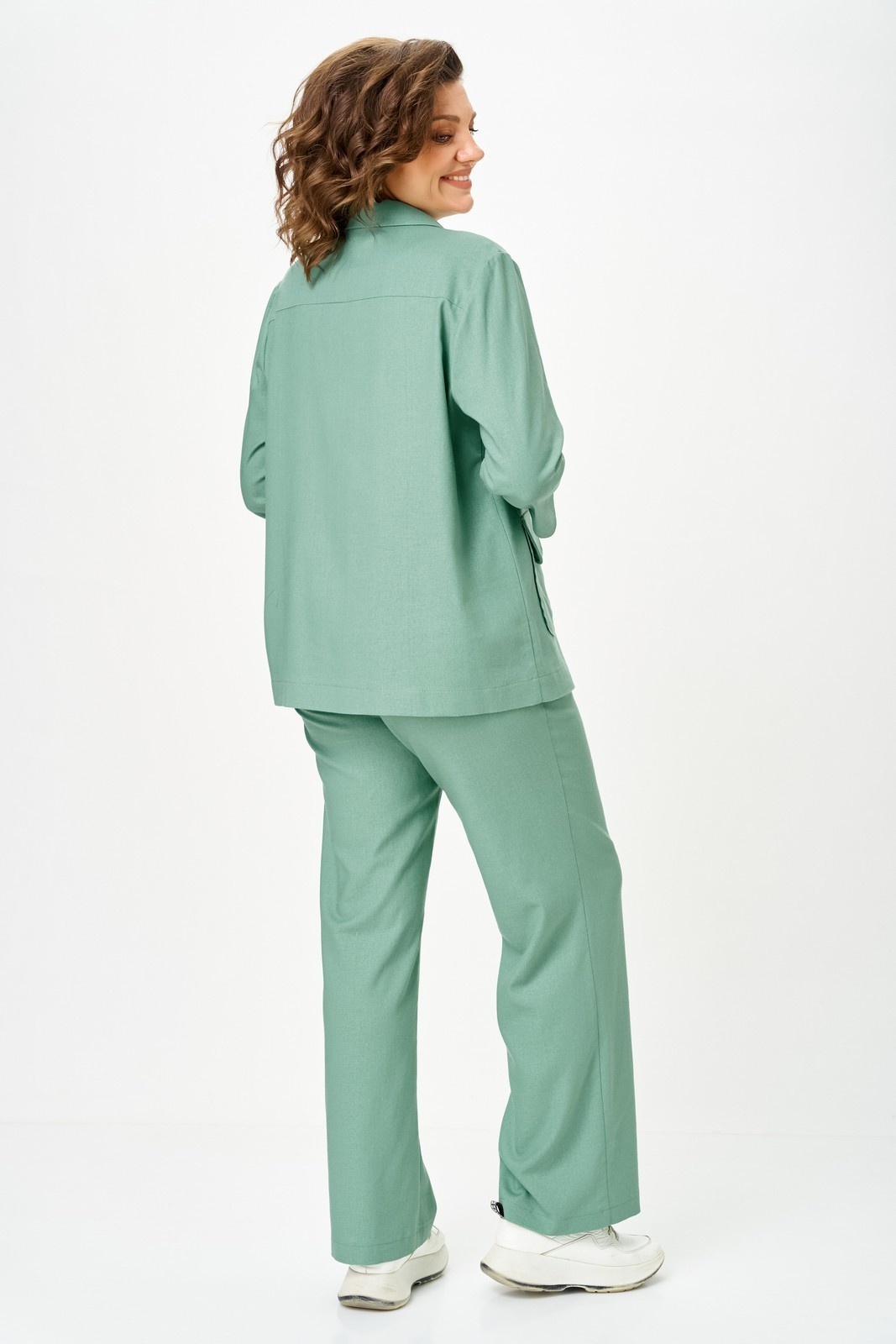 Костюм брючный 2328 мята Svetlana Style представляет собой идеальное сочетание комфорта и стиля. Коллекция бренда Svetlana Style создаёт уникальные образы для повседневной носки. Изготовленный из льна, вискозы и спандекса, материал обеспечивает комфорт и лёгкость движений благодаря эластичности и мягкости. Жакет прямого силуэта с укороченным рукавом и отложным воротником на петли и пуговицы, дополнен накладными карманами для удобства. Брюки свободного кроя с высокой посадкой и резинкой на талии обеспечивают удобную посадку. Костюм отлично подойдёт для весенне-летнего сезона и выполнен в нежном мятном цвете, добавляющем свежести вашему образу. Длина по спинке жакета — 67 см, длина рукава — 45 см, длина брюк — 105 см.