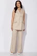 Комплект женский, 2-х предметный, состоящий из жилета и брюк. Жилет полуприлегающего силуэта, на подкладке. По переду отрезные бочки, вытачки и отделочные клапаны. Воротник отложной с лацканами. Застежка двубортная на пуговицы. По спинке средний шов, талевые вытачки и высокая шлица с отделочной пуговицей. Спинка задекорирована контрастной вышивкой. Брюки прямые с наклонными карманами спереди. Пояс притачной с резинкой и кулисой по кругу. Центральная часть пояса без резинки.