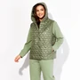 Комплект женский, 2х предметный, состоящий из жилета и брюк. Жилет полуприлегающего силуэта, со спущенной линией плеча и цельнокройными, укороченными по низу бочками. По переду нагрудные вытачки. Вырез горловины У-образной формы. Застежка спереди, цельнокройная на кнопки. Полочка задекорирована съемным цветком. По спинке пояс-хлястик с застежкой на кнопки. Брюки прямые. По переду мягкие складки и наклонные карманы. Пояс притачной, с застежкой на кнопки и резинкой по спинке. Застежка брюк, спереди, на тесьму "молния" под "гульфик"