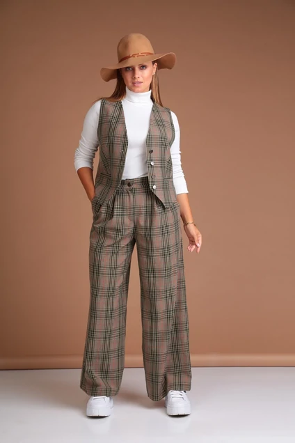 Стильный комплект,состоящий из жилета и брюк палаццо идеальный выбор этой осени. Брюки с высокой посадкой идеально подходят на любой рост, силуэтный жилет, садится по фигуре и идеально дополняет образ. Премиальное качество.