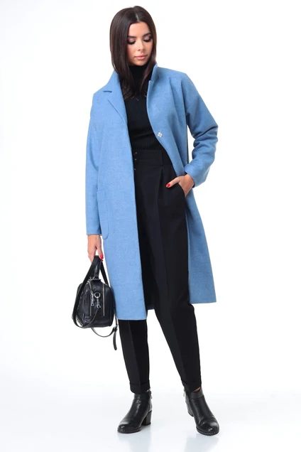 Костюм брючный+пальто 7085 голубой + черный Tender and nice