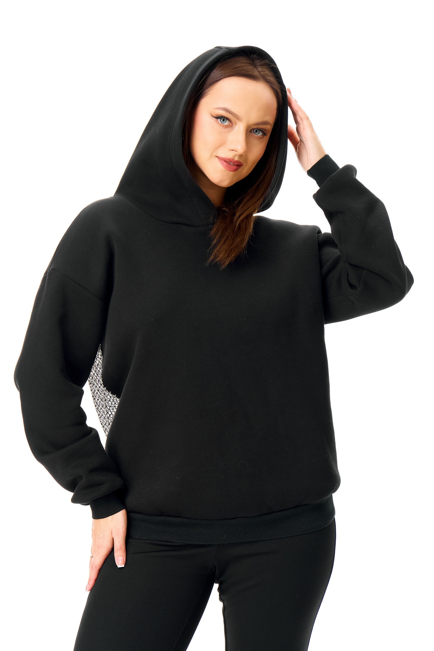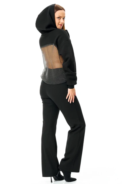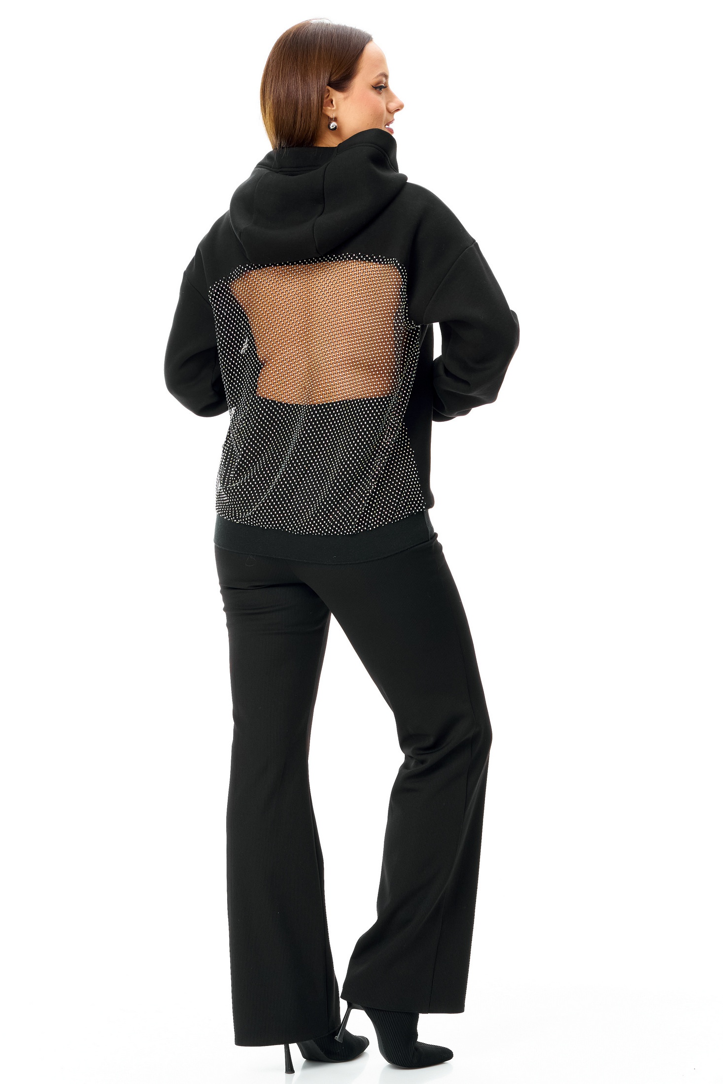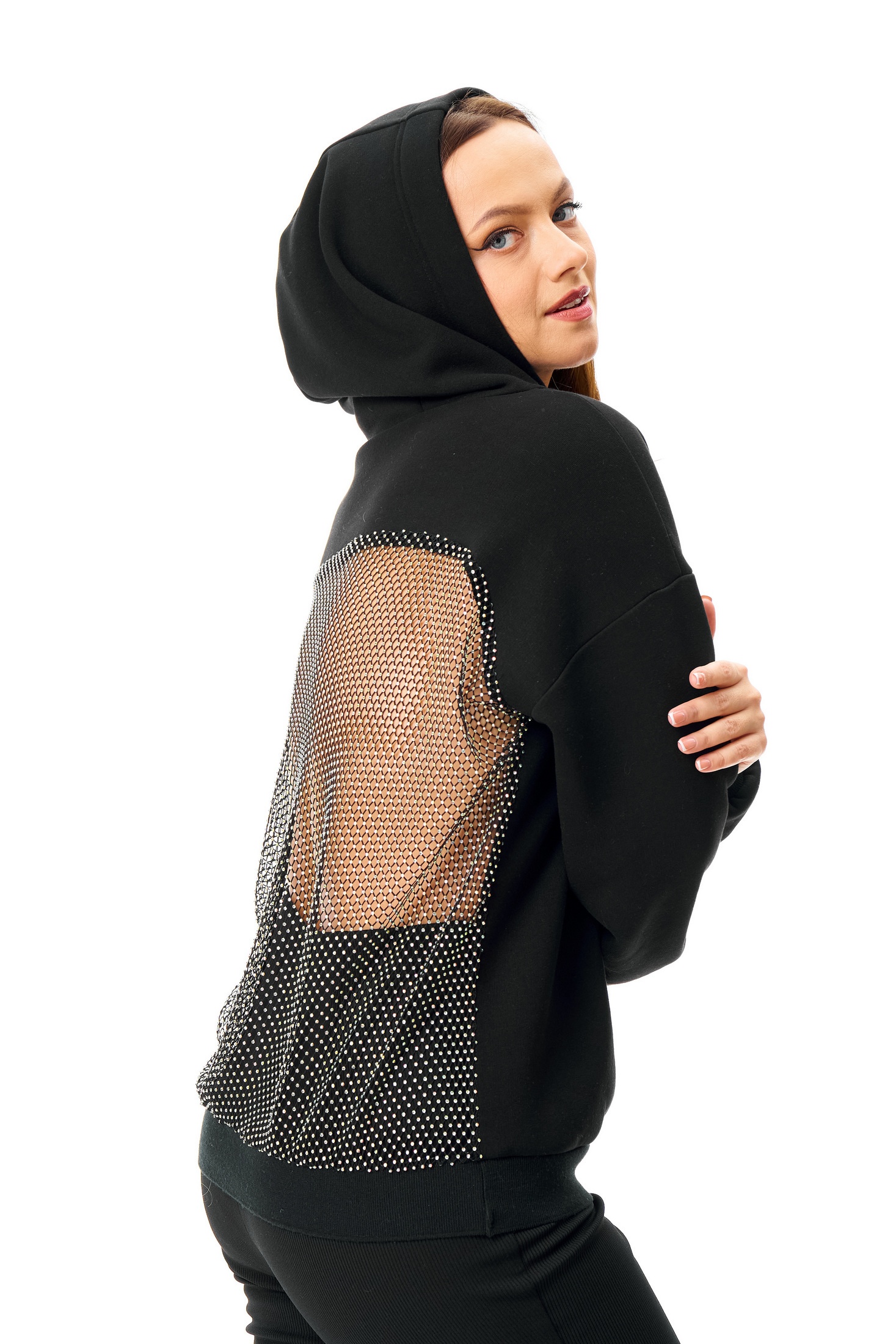 Сочетание нежности и дерзости в одной модели. Это не просто худи, а настоящий арт-объект для вашего гардероба. Мягкий и уютный крой спереди идеально контрастирует с соблазнительной спинкой, украшенной сеткой со стразами.