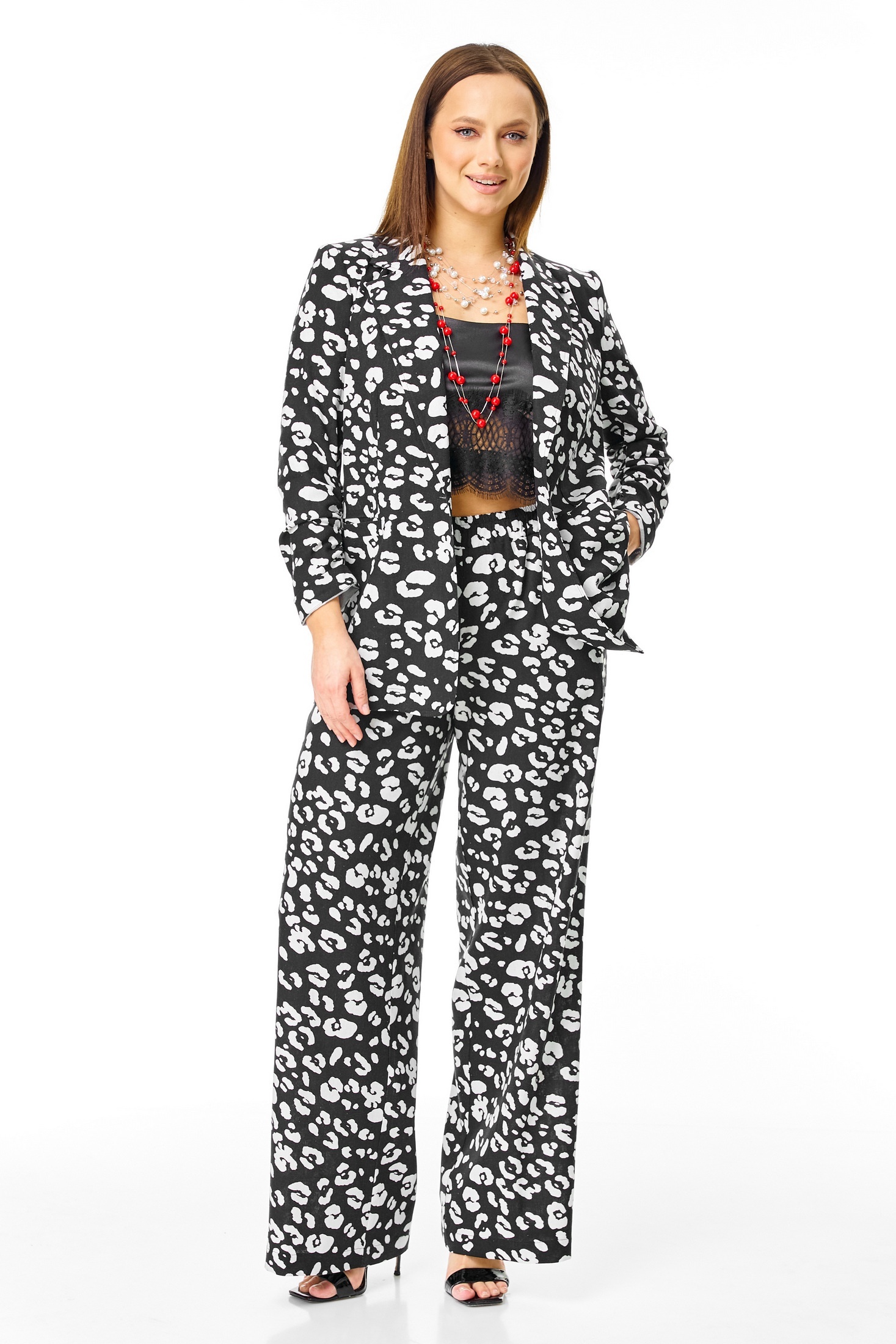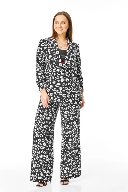 Костюм брючный 7745 Tender and nice — это идеальный выбор для стильного и современного гардероба. Коллекция бренда Tender and nice сочетает в себе удобство и элегантность. Свободный облегченный жакет с воротником и лацканами, застёгивается на петлю и пуговицу, а также оснащён прорезными карманами для дополнительного комфорта. Длинный рукав слегка присобран на уровне локтя, придавая женственность и изящество образу. Брюки с высокой посадкой на талии, прямого кроя, с глубокими карманами и резинкой по поясу. Костюм выполнен из высококачественного хлопка с добавлением эластана, что обеспечивает комфорт при носке и лёгкость. Чёрно-белый принт делает образ универсальным, подходящим для различных случаев — от офисных встреч до повседневных прогулок. Длина брюк составляет 100 см, что идеально подходит для большинства стандартных фигур.