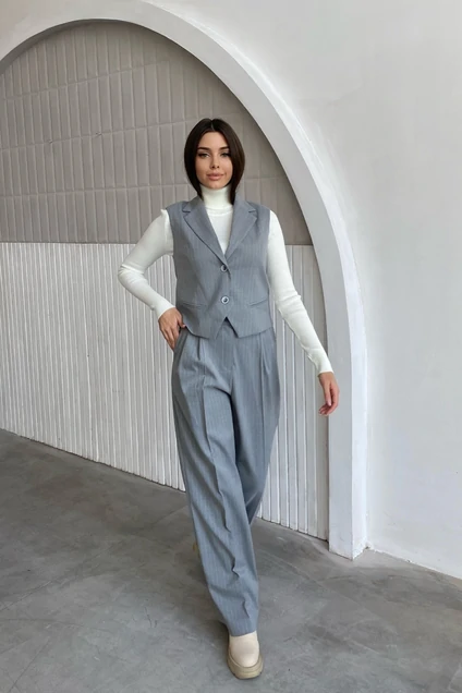 Костюм брючный 0257-0258 серый в полоску The Woman