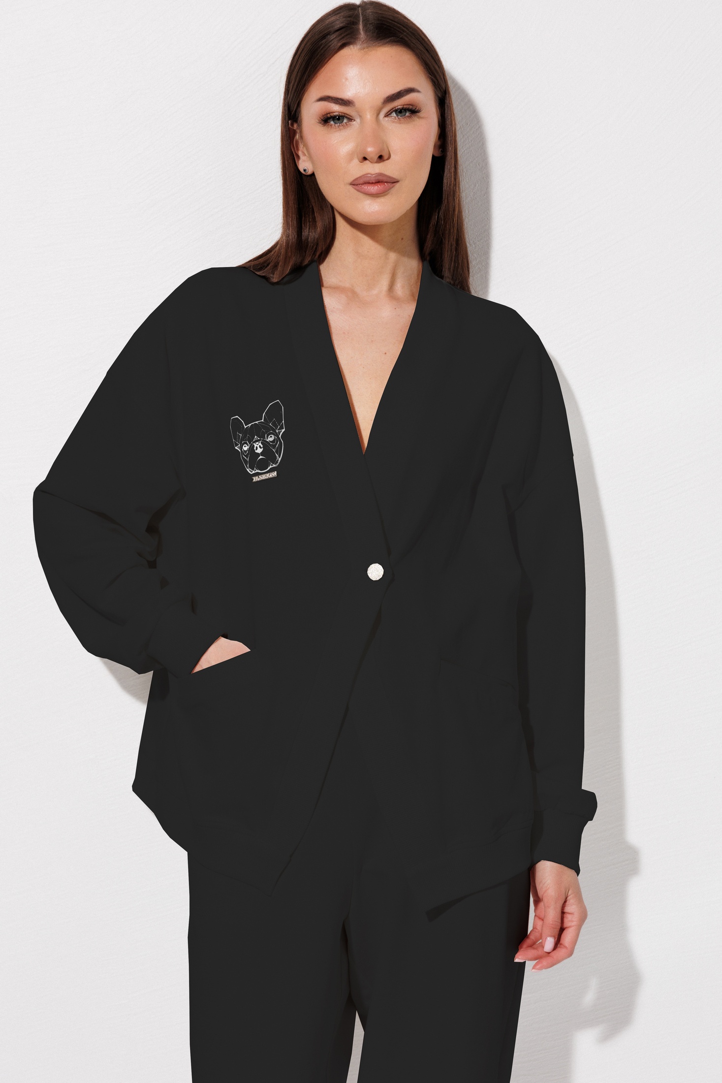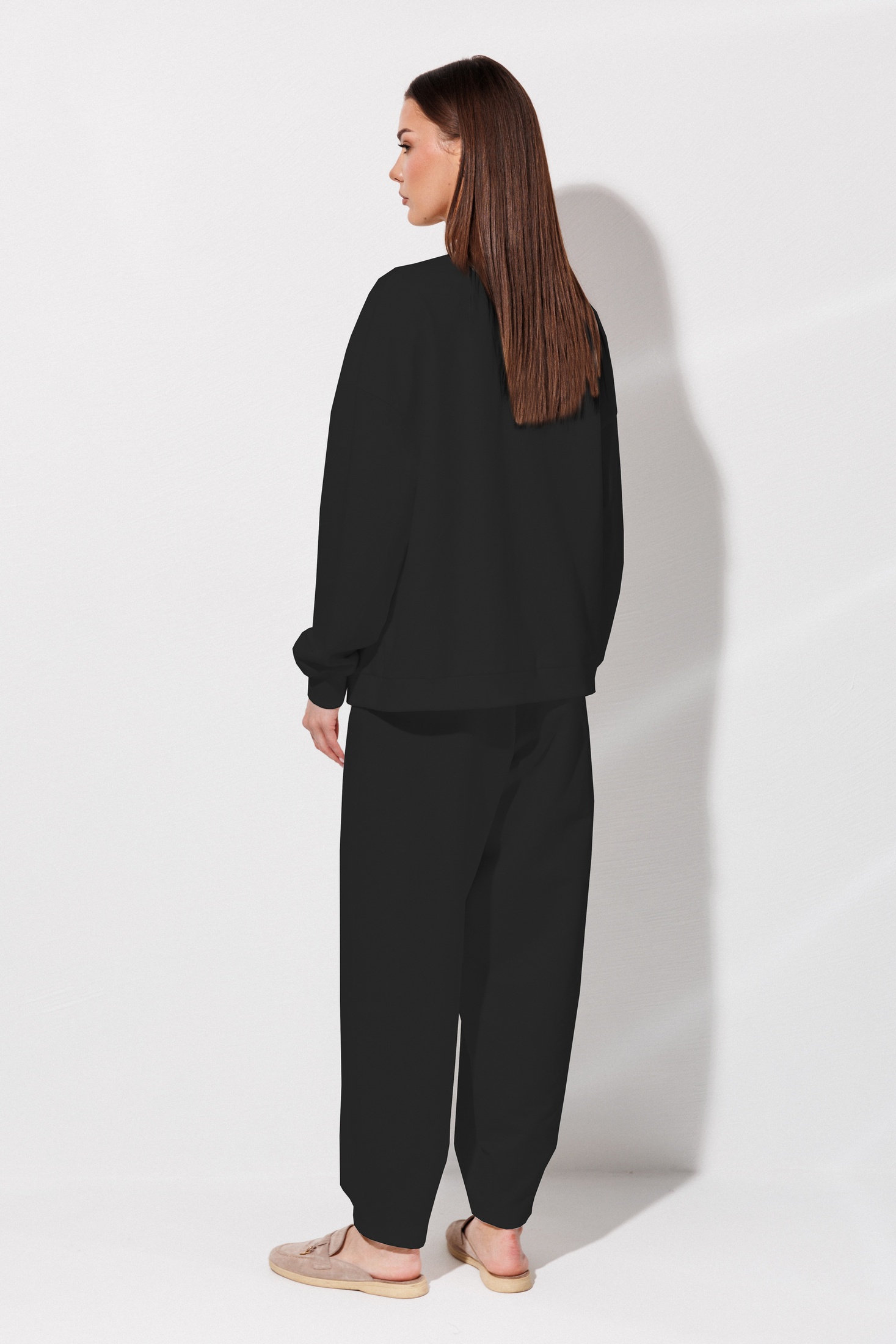 Костюм брючный 1136 черный V&N fashion - это стильный выбор для вашего гардероба. Коллекция бренда V&N fashion представлена из футера двухнитки, что обеспечивает комфорт и износостойкость. Джемпер обладает V-образным вырезом и свободным силуэтом, рукава со спущенной линией на манжете кашкорсе, а низ обработан для дополнительного удобства. Брюки-джоггеры с боковыми карманами и регулируемым поясом подчеркивают непринужденный городской стиль. Черный цвет и декоративные элементы делают костюм универсальным для повседневной носки в осенние и весенние сезоны.