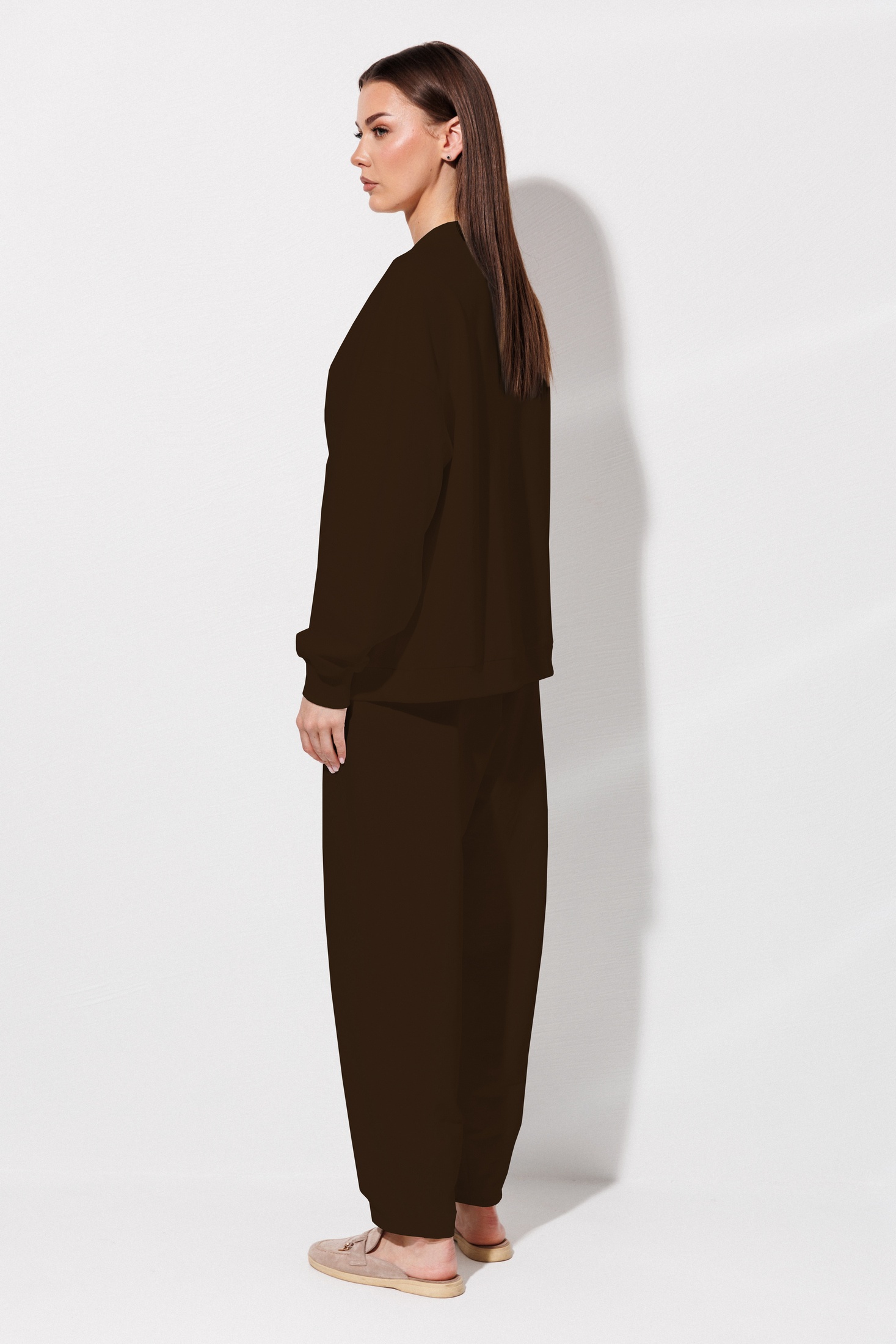 Костюм брючный 1136 шоколад V&N fashion — это идеальное сочетание стиля и комфорта от коллекции бренда V&N fashion. Изготовленный из футера двухнитки с добавлением хлопка и эластана, этот костюм обеспечивает свободу движений и долговечность. Джемпер имеет свободный силуэт, V-образный вырез с притачными планками и декоративные элементы, добавляющие уникальность. Рукава с манжетами из кашкорсе дополняют стильный образ. Джоггеры оснащены боковыми карманами и регулируемым поясом на шнурке для максимального комфорта. Костюм представлен в насыщенном шоколадном оттенке, подходящем для осеннего и зимнего сезонов. Это идеальный выбор для прогулок или повседневного ношения, когда хочется выглядеть модно и чувствовать себя уютно.