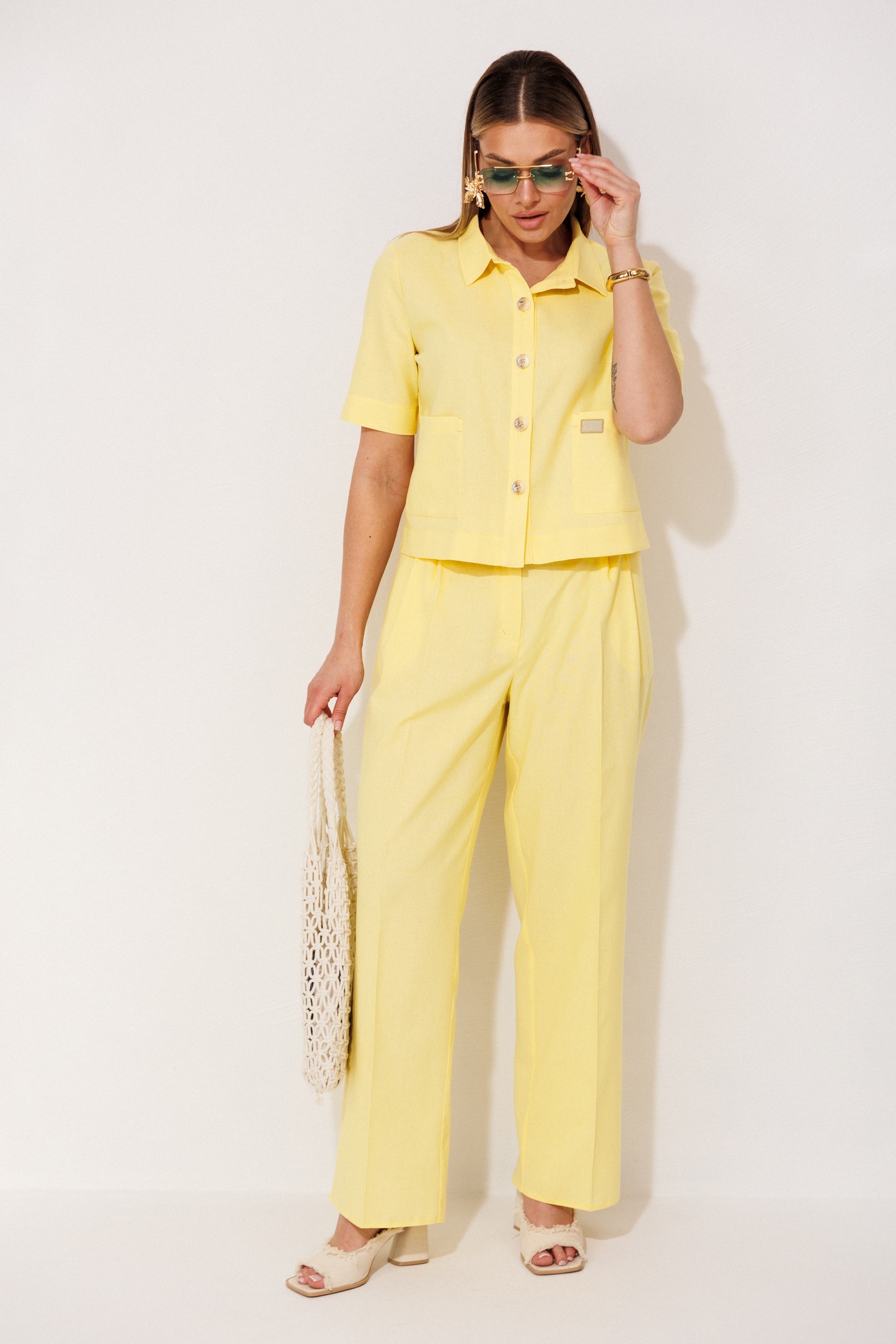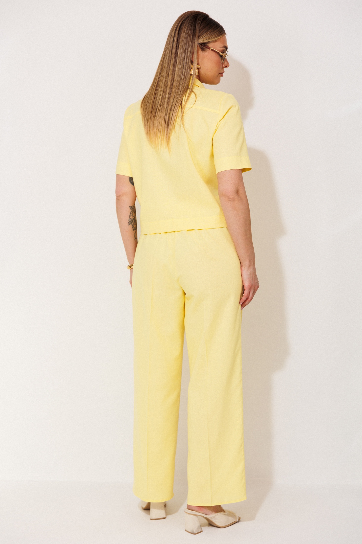 Костюм брючный 2458 желтый VeritaModa — это стильное сочетание комфорта и современного дизайна. Коллекция бренда VeritaModa предлагает женственный комплект, состоящий из укороченного жакета и прямых брюк. Жакет с петли-пуговицами и накладными карманами на передней стороне дополнен всесезонным комфортом благодаря натуральной ткани. Платье из льна и вискозы с добавлением спандекса обеспечивает легкость и свободу движений. Яркий желтый цвет добавляет свежести вашему гардеробу, создавая яркий акцент. Идеально подходит для летних дней или весенних прогулок. Короткий рукав и прямой крой брюк делают костюм идеальным выбором как для офиса, так и для повседневного использования.