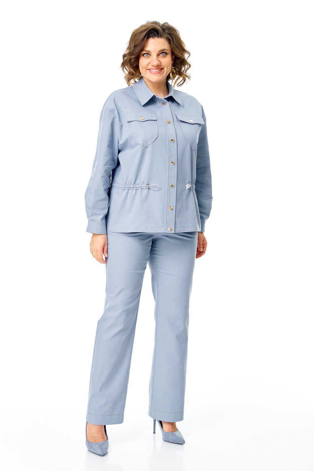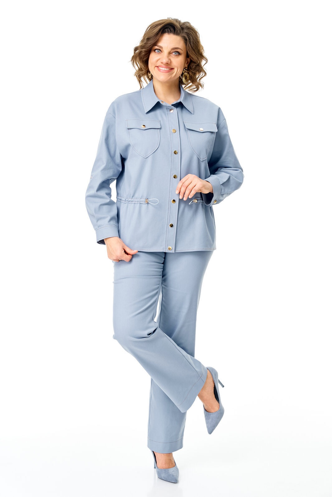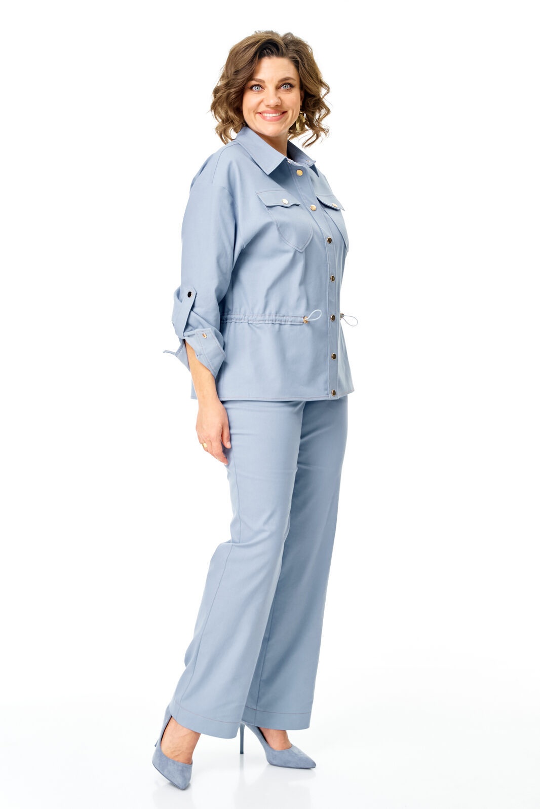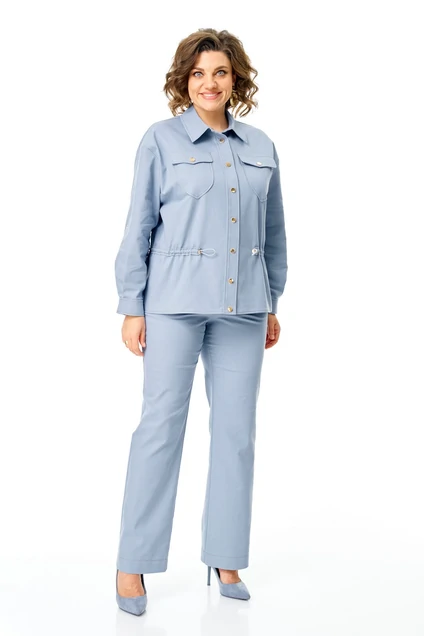 Костюм брючный 1202 голубой дым VI ORO, представленный в коллекции бренда VI ORO, станет стильным дополнением вашего гардероба. Изготовленный из сочетания хлопка, вискозы и эластана, он обеспечивает комфорт и свободу движений. Прямой покрой жакета и брюк подчеркивает элегантность образа, а свободная линия плеча и отложной воротник добавляют изящества. Застёжка на золотые кнопки и контрастные отделочные строчки придают наряду яркость. Этот костюм идеально подходит как для повседневного ношения, так и для деловых встреч благодаря комбинации стилей классического и офисного. Лёгкий голубой оттенок освежает образ, а функциональные детали, такие как накладные карманы и манжеты с защипами, добавляют практичности.