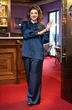 Костюм женский состоит из блузы и брюк.Блуза свободного покроя со спущенной линией плеча.Центральная бортовая застёжка с планкой на петли-пуговицы Рукав втачной одношовный. Низ рукава с манжетой из полотна с пайетками и складками.Спинка с кокеткой и встречной складкой.Воротник на отрезной стойке блузочного типа.По переду настрочены декоративные клапаны из полотна с пайетками.Брюки свободные расширенного силуэта.По бокам выполнены лампасы из полотна с пайетками.Пояс притачной на резинке.В боковых швах карманы.