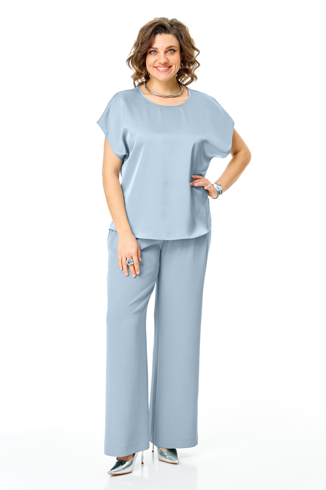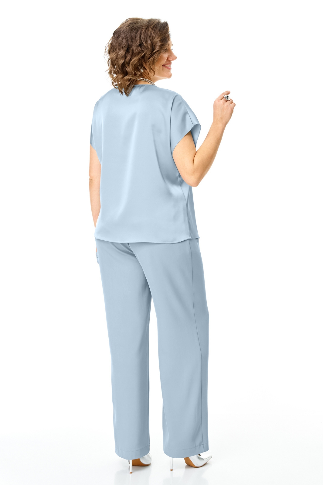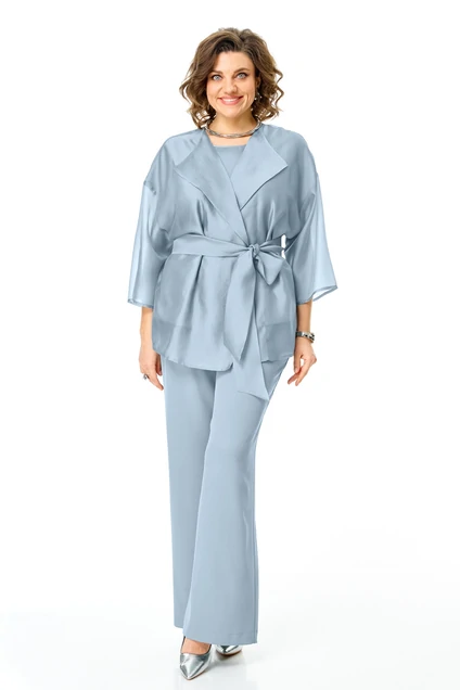Костюм брючный 1262 голубой дым VI ORO — это выбор для тех, кто ценит комфорт и стиль. Коллекция бренда VI ORO представляет женственный комплект из блузы, топа и брюк, выполненный из материала 'Искринка', который придаёт образу утонченность. Блуза свободного покроя с воротником типа 'апаш', рукав длиной 3/4 и декоративный навесной пояс. Топ с округлой горловиной и спущенной линией плеча. Брюки прямого кроя с поясом на резинке, молнией и карманами. Комплект выполнен в голубом оттенке и подходит для любого торжества. Отличный выбор для весны и лета.