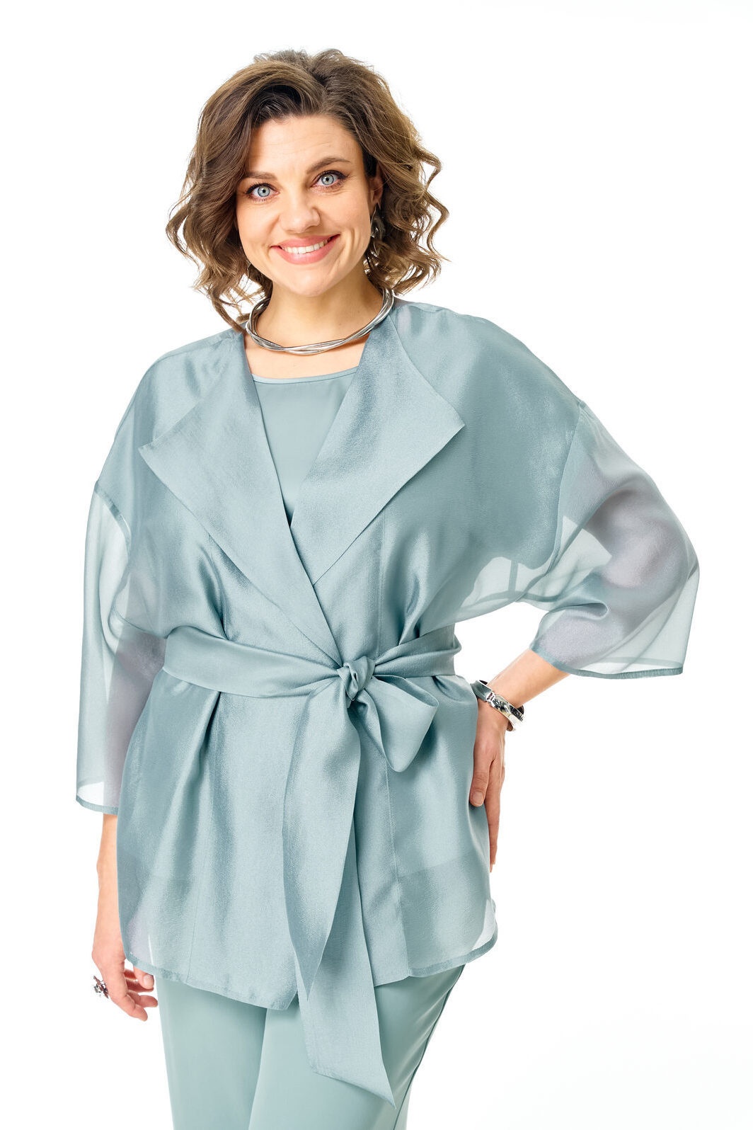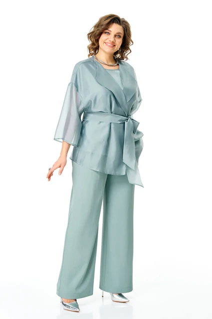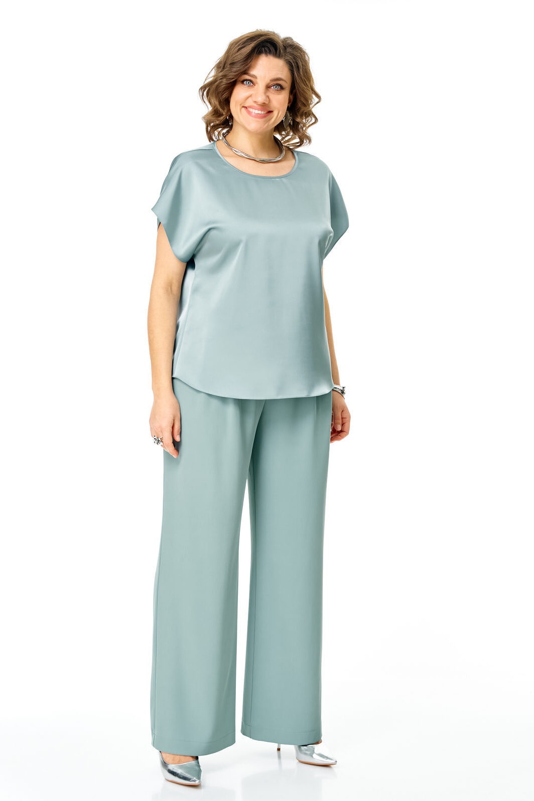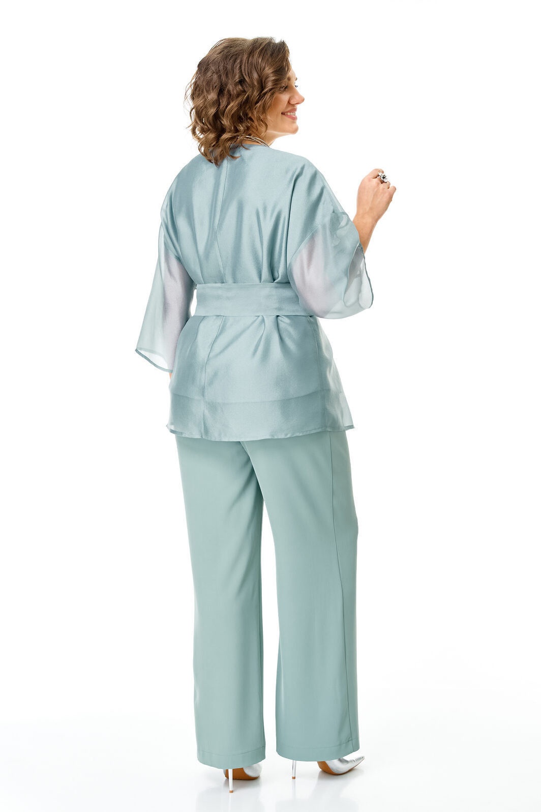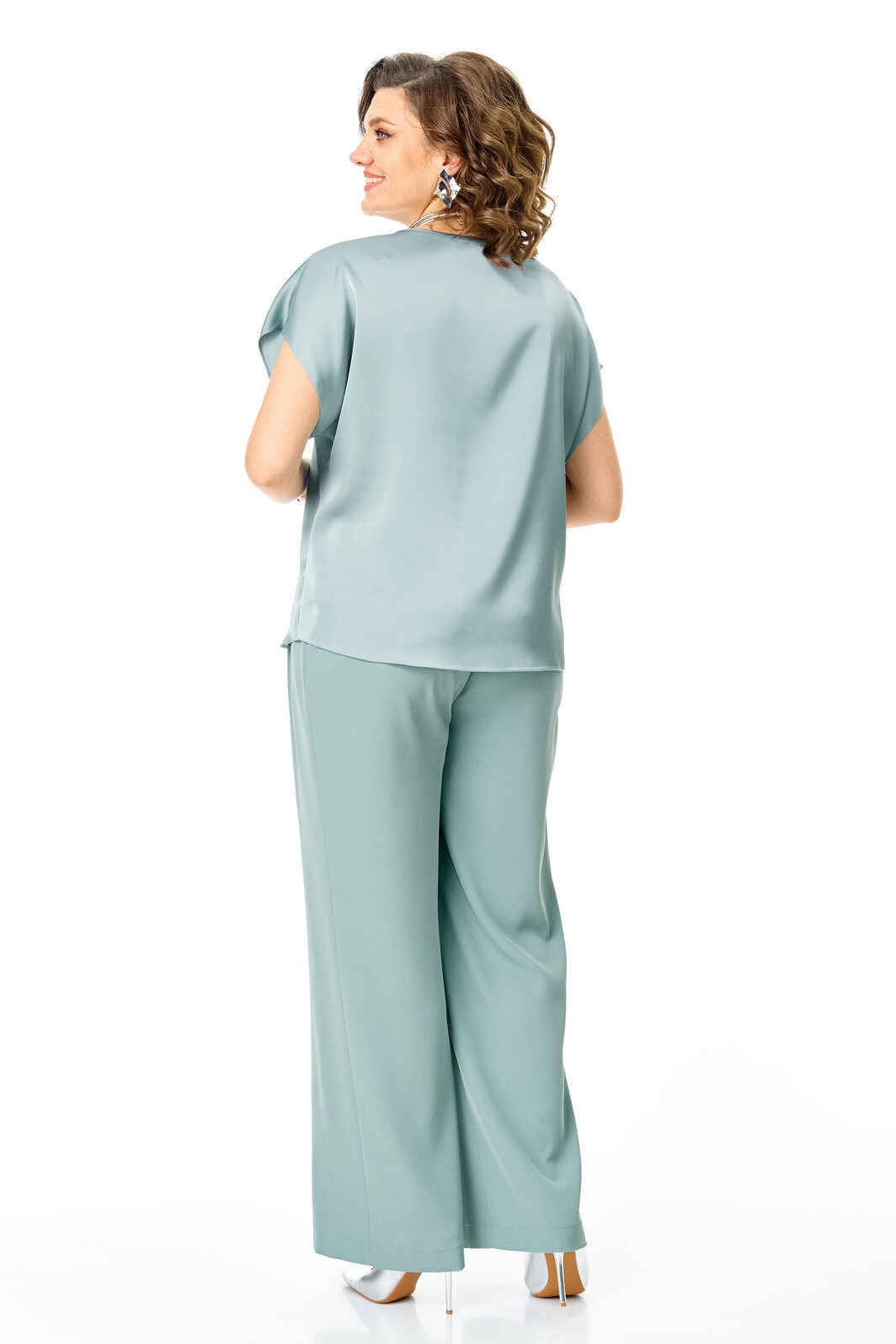 Костюм брючный 1262 ментол от VI ORO — это изысканная гармония комфорта и стиля на каждый день. Коллекция бренда отличается оригинальностью и утонченностью. Комплект включает в себя блузу из ткани 'Искринка', свободного покроя с воротником типа 'апаш', и брюки прямого силуэта с притачным поясом и боковыми карманами. Блуза выполнена с рукавом 3/4, а топ имеет округлую окантованную горловину и цельнокроеный спущенный рукав. Брюки заниженного покроя дополнены застежкой на молнию и пуговицу. Подойдет для весенне-летнего сезона, подходит на любое торжество благодаря потокам нежного ментолового цвета, мягким линиям и продуманной конструкции.