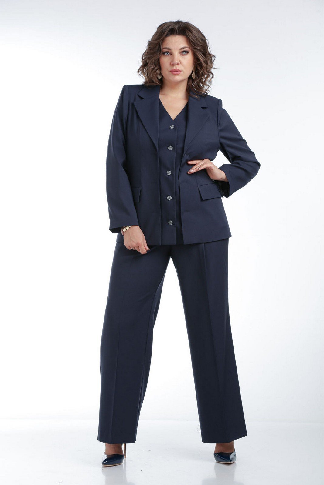 Костюм брючный 638 синий Via-mod
