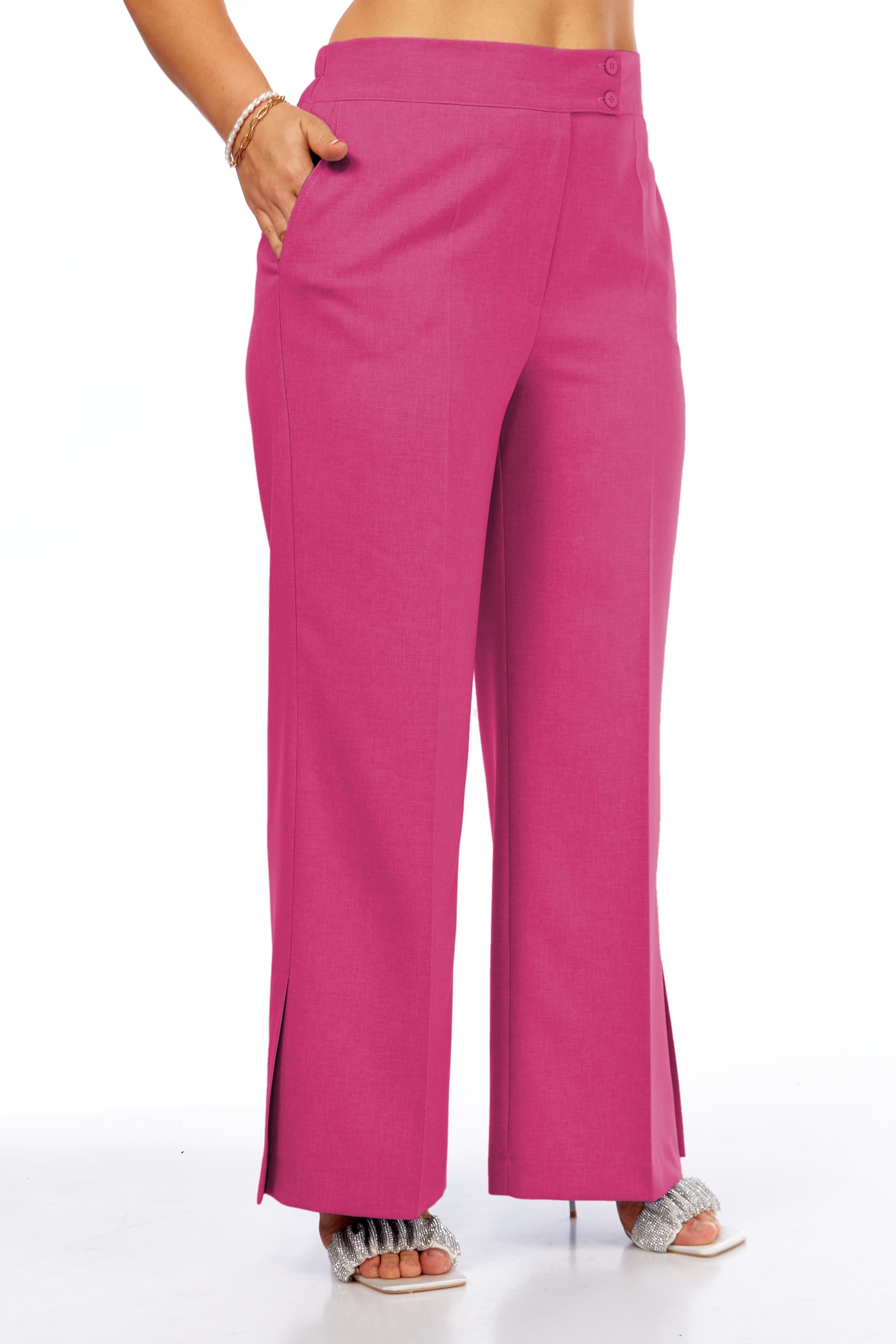 Костюм женский двухпредметный, состоящий из жакета и брюк. Жакет без подкладки с центральной бортовой застежкой на 3 петли-пуговицы до линии перегиба лацкана и с двумя горизонтальными подрезами по спинке и переду. В нижнем подрезе переда обработаны карманы "в шве". На правой верхней части переда настрочена декоративная нашивка. По подрезам проложена контрастная отделочная строчка. Воротник пиджачного типа. Рукав короткий одношовный с центральной широкой манжетой с отделочной строчкой. Брюки прямого силуэта с притачным широким поясом сзади на резинку. Застежка на 2 петли-пуговицы по мысу пояса и тесьму-молнию в средних срезах передних половинок. Карманы наклонные к боковому шву. В боковых швах по низу изделия обработаны отлетные шлицы.