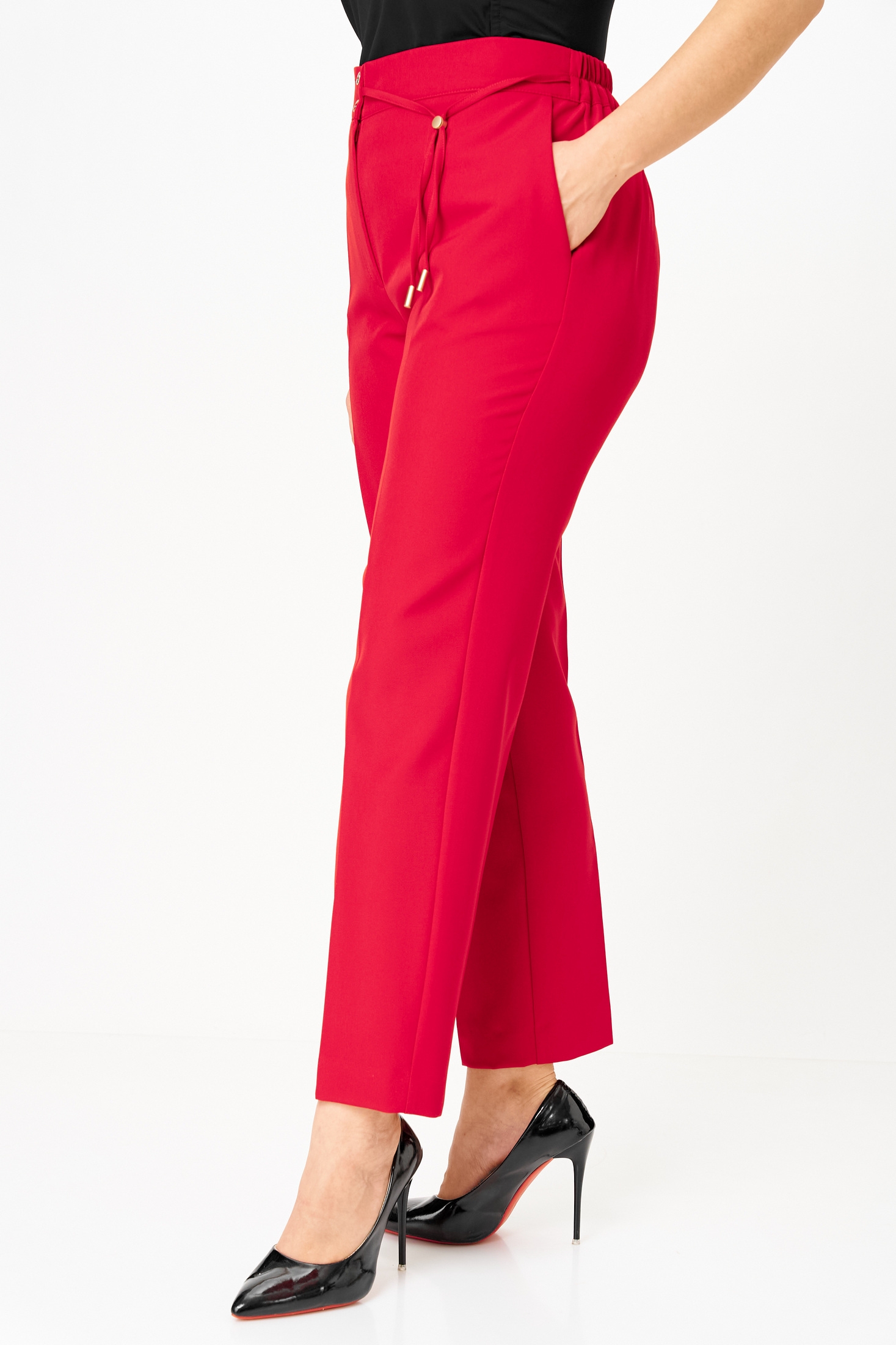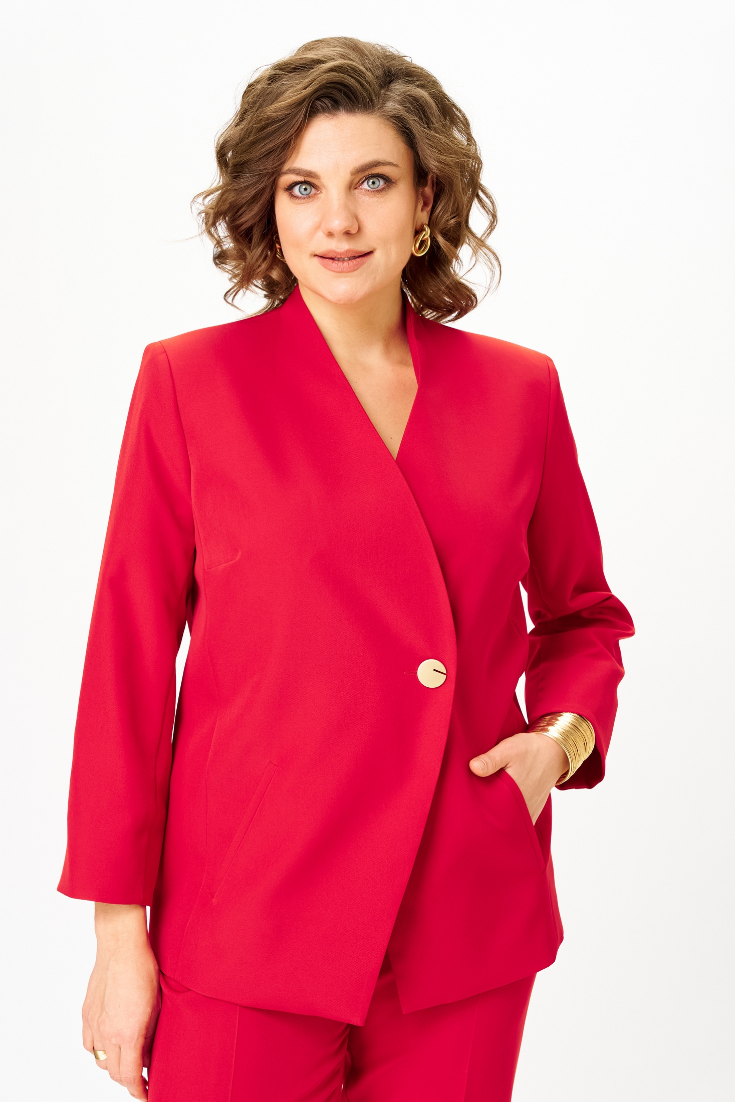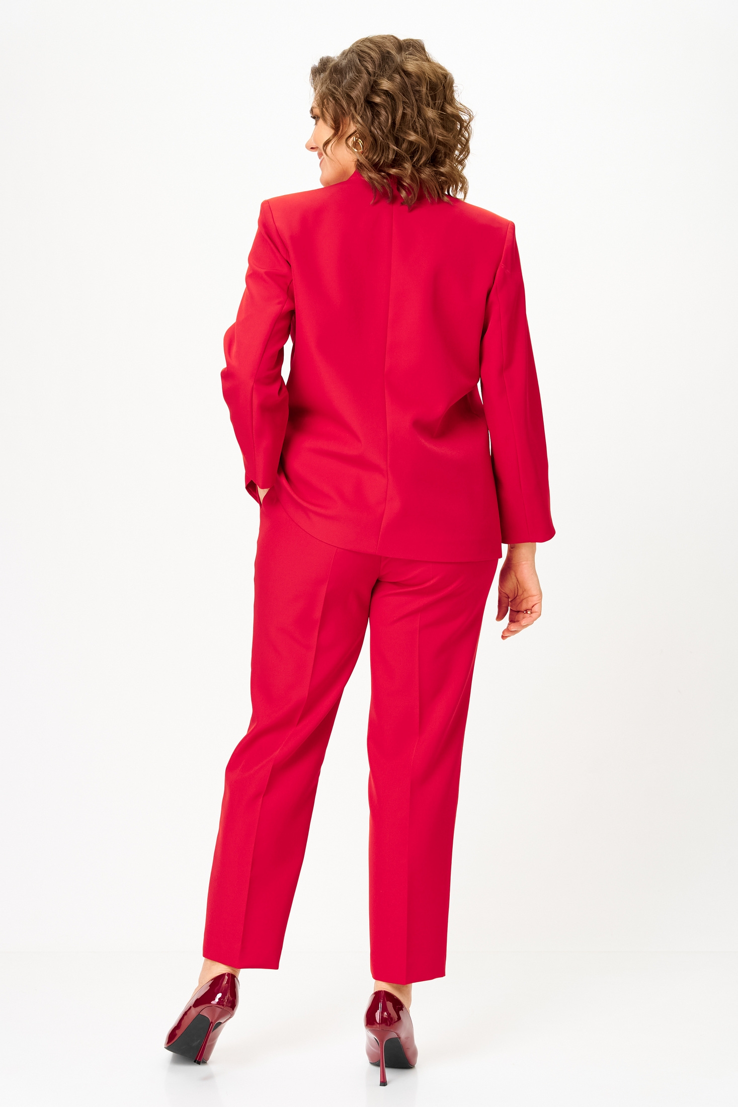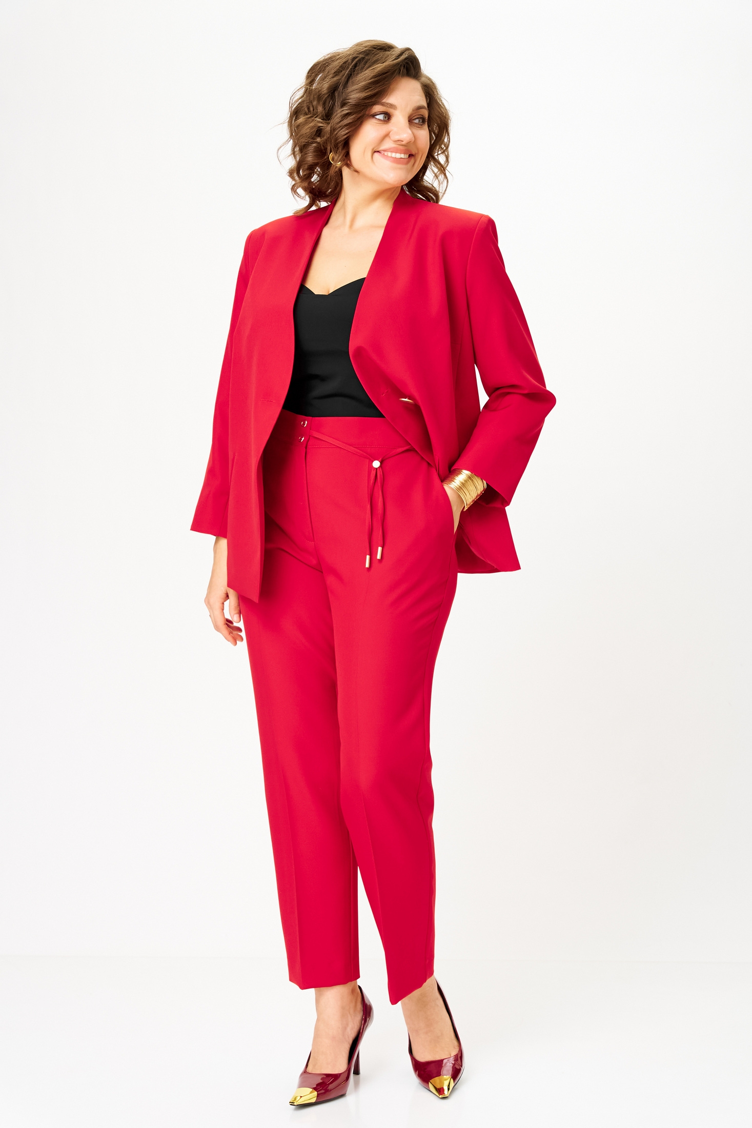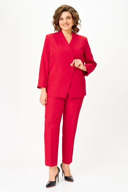Костюм брючный 1092 красный Vilena — это стильное решение для вашего гардероба. Коллекция бренда Vilena представляет элегантный брючный костюм, выполненный из полиэстера с добавлением вискозы и спандекса. Жакет полуприлегающего силуэта украшен декоративной петлей-пуговицей и имеет потайную застежку. Особенности: отрезной бочок, карманы с листочкой и фигурный борт. Брюки классического кроя заужены к низу, с наклонными карманами и притачным поясом, дополнены шнурком с фиксатором. Костюм в насыщенном красном цвете подойдет для осенне-зимнего сезона, идеально для офисного стиля. Длинные втачные рукава и заутюженные канты придают строгость и стиль.