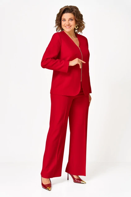 Костюм брючный 1133 красный Vilena – идеальный выбор для стильных женщин. Коллекция бренда Vilena предлагает этот ярко-красный костюм, состоящий из жакета и брюк. Жакет полуприлегающего силуэта с V-образным вырезом и застежкой на тесьму-молнию подчеркивает элегантность образа. Брюки-палацо с притачным поясом и стрелками добавляют нотку утонченности. Выполнен из полиэстера, вискозы и спандекса, что обеспечивает комфорт и легкость в носке. Карманы с наклонным входом и резинка сзади на поясе брючин делают костюм практичным и удобным для повседневной носки. Идеален для офисного и делового стиля, костюм подходит для осенне-зимнего сезона.