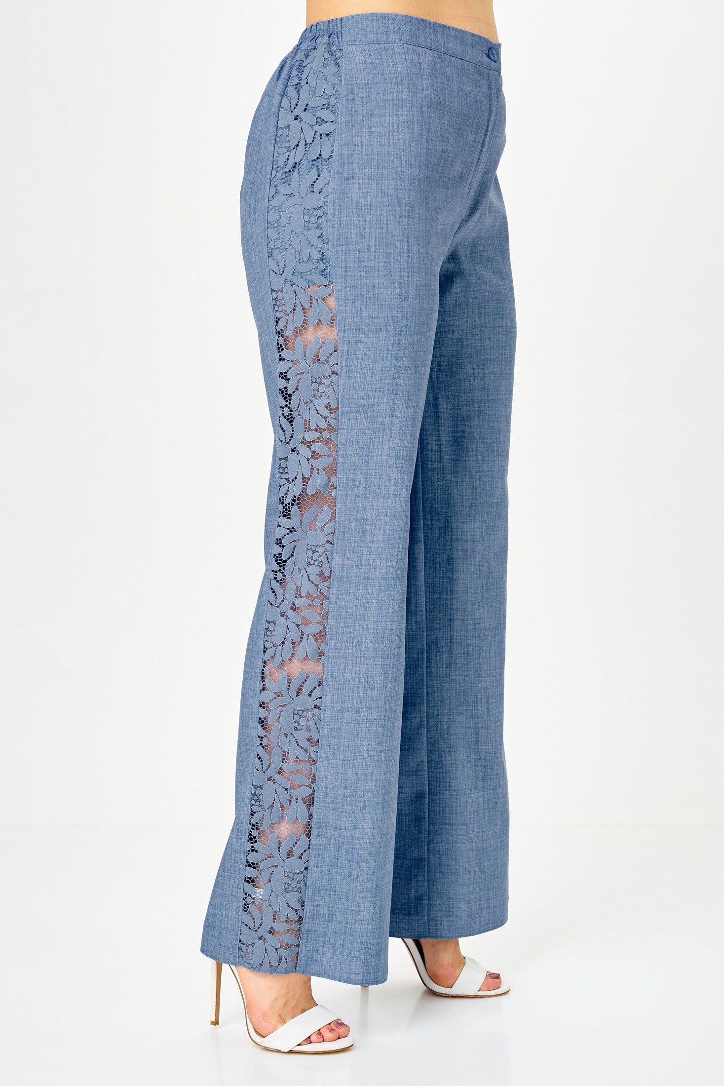 Костюм брючный 1151 джинс Vilena представляет собой изысканный двухпредметный комплект из жакета и брюк. Коллекция бренда Vilena выполнена из лёна, полиэстера и спандекса, что обеспечивает лёгкость и комфорт. Жакет полуприлегающего силуэта с V-образной горловиной и короткими кружевными рукавами добавляет женственности и стиля. Брюки классического кроя с притачным поясом на резинке сзади и застёжкой на петлю-пуговицу подойдут на любой весенний и летний выход. Особенностью являются кружевные вставки вдоль внешних боковых швов. Костюм выполнен в модном синем цвете, идеально подходящем для делового и повседневного стиля.