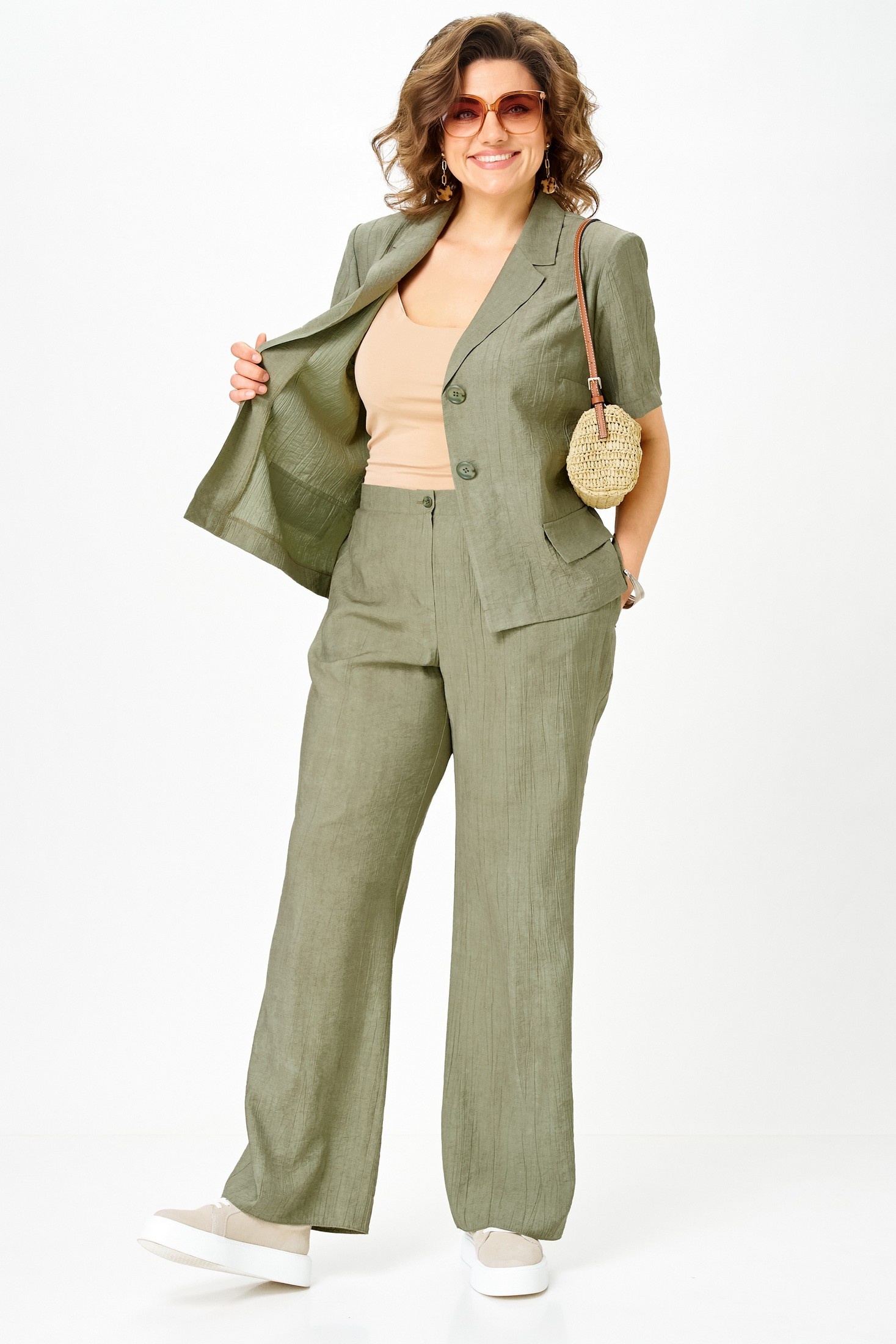 Костюм брючный 1170 хаки Vilena — идеальный выбор для стильного образа. Коллекция бренда Vilena предлагает классический жакет с центральной бортовой застёжкой на две пуговицы, выполненный из мягкой вискозы с добавлением нейлона для комфорта и долговечности. Жакет обладает полуприлегающим силуэтом и отделочными элементами в виде клапанов, а задняя часть удлинена для создания элегантного контраста. В боковых швах жакета по направлению к боковому шву выполнены карманы. Брюки классического силуэта на резинке с застёжкой-молнией обеспечивают свободу движений и комфорт. Стильный хаки цвет и современный дизайн делают этот костюм идеальным для офисной рабочей обстановки и городских прогулок в демисезон. Костюм подойдёт для повседневного и делового стиля.