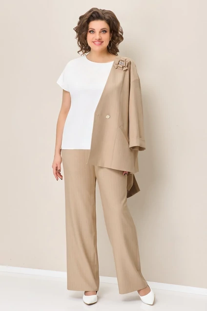Костюм брючный 1384 светло-бежевый + полоска VOLNA