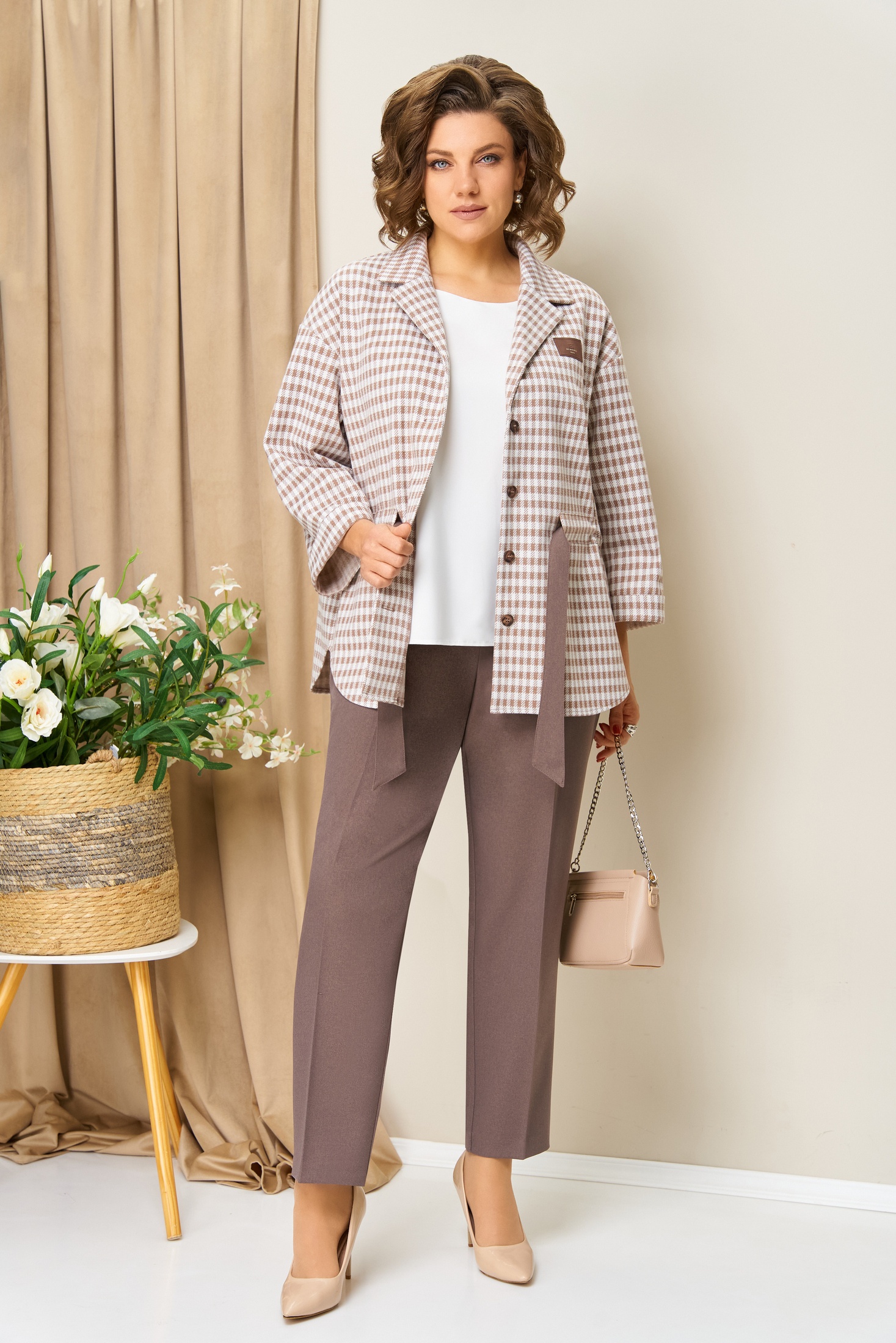 Костюм брючный 1441 бежевый капучино VOLNA