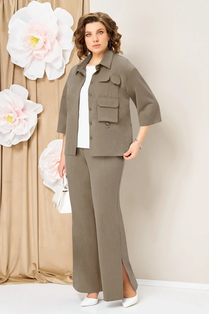 Костюм брючный 1463 бежевый VOLNA предлагает стильное решение для вашего гардероба. Коллекция бренда VOLNA включает в себя комплект-тройку, состоящий из жакета-рубашки без подкладки с карманами и потайной застежкой на пуговицы, легкой блузы и свободных брюк. Изготовленный из полиэстера, вискозы и спандекса, костюм обеспечивает комфорт и долговечность. Жакет длиной 61 см по спинке и рукавом 45 см придают образу свежести и современности. Брюки прямого кроя с высокой посадкой, притачным поясом и изящными разрезами по бокам длиной 105 см обеспечивают свободу движения. Этот повседневный стиль идеально подходит для теплого сезона, а бежевый цвет подчеркнет вашу индивидуальность и утонченность. Длина блузы по центру спинки- 59см. Длина брюк по боковому шву- 105см