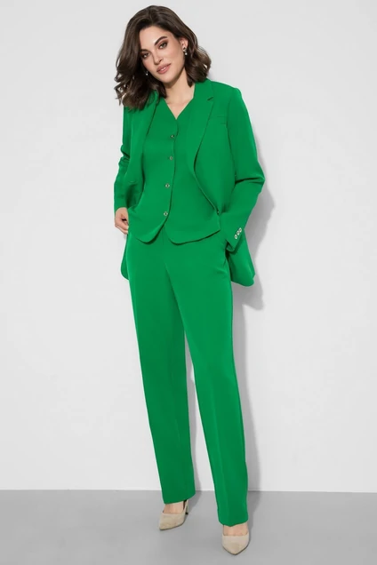 Костюм давно стал важной составляющей гардероба. Он добавляет уверенности, делает нас женственнее и, главное, легко подстраивается под остальные составляющие гардероба. Жилет на пуговицах на голое тело — модный тренд этого лета, который стоит взять на вооружение. Костюм женский трехпредметный, состоит из жакета полуприлегающего силуэта, жилета прилегающего силуэта и прямых брюк.