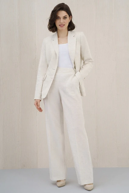 Льняной брючный костюм – настоящее спасение для работающих женщин в жаркое время года.
