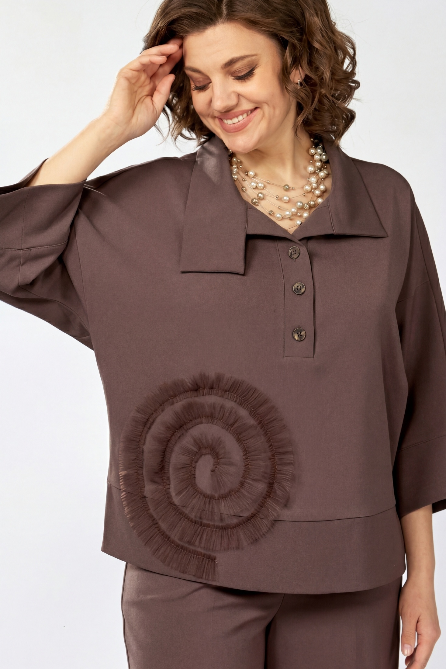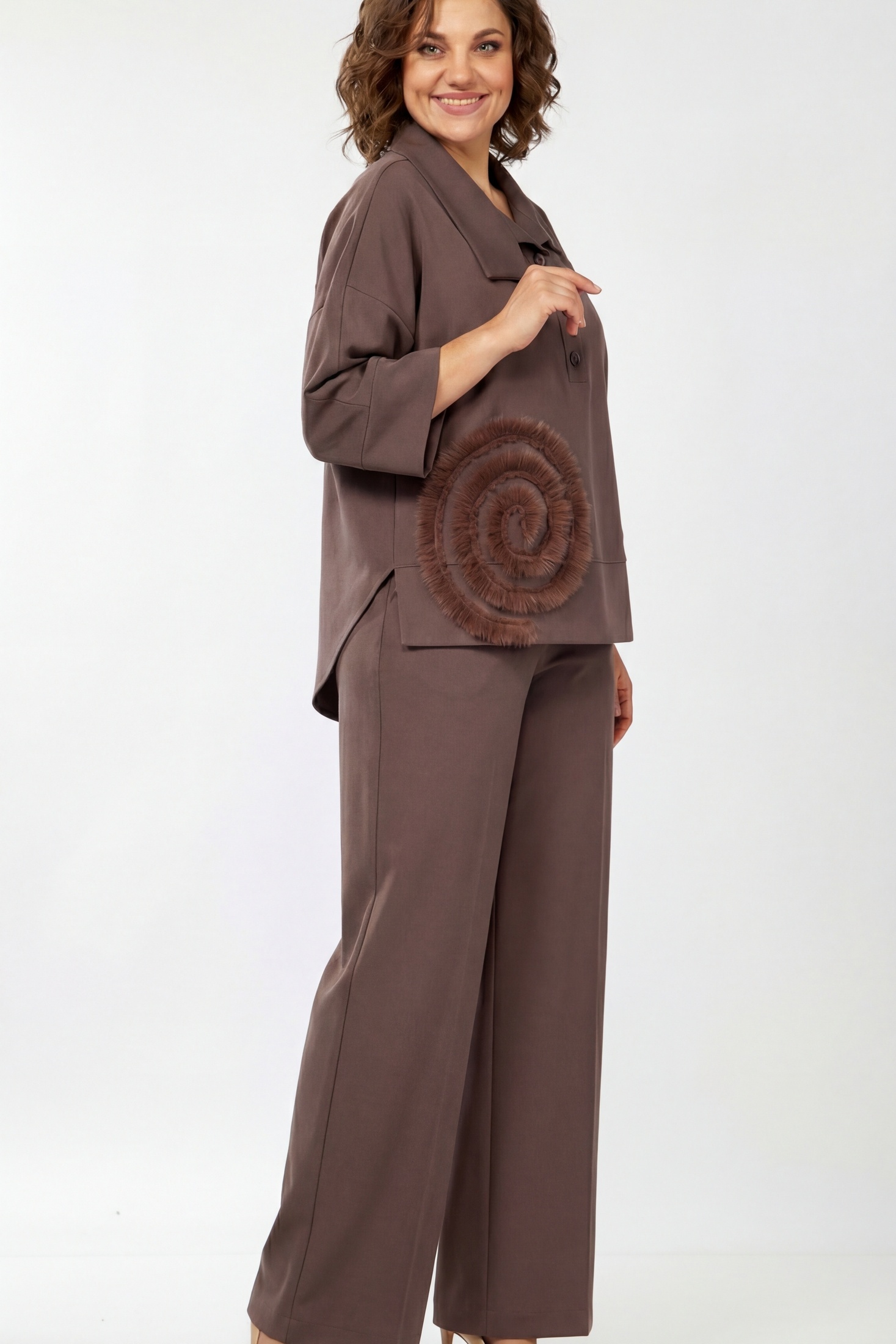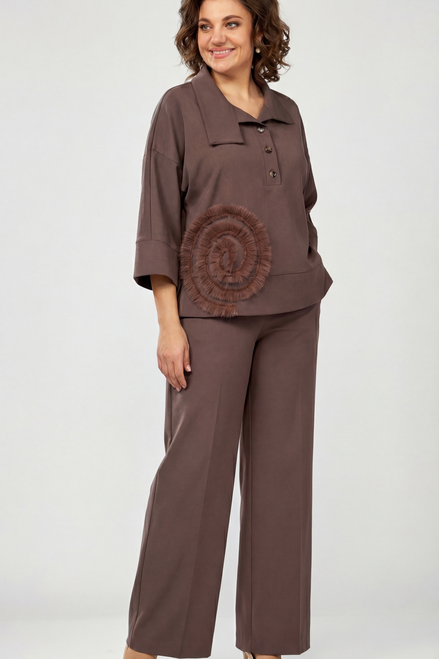 Костюм брючный 559-2 шоколадный мусс Zigzag Style