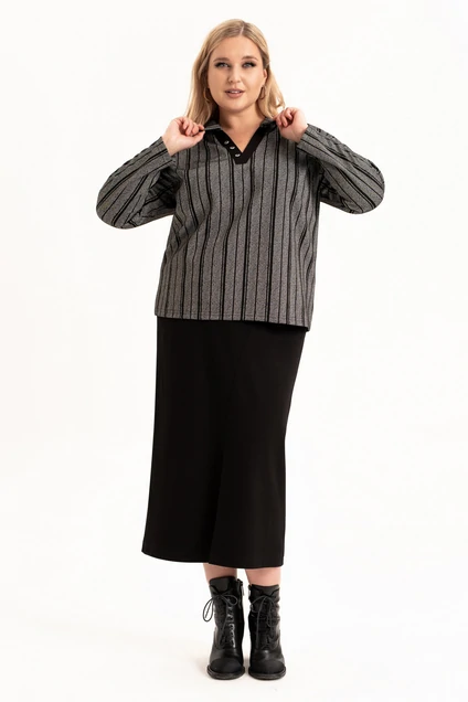 Стильный женский трикотажный костюм с юбкой станет настоящей находкой для каждой современной модницы. Удобный и практичный женский костюм оверсайз прекрасно подходит для любого типа фигуры, помогая выгодно скрыть недостатки и подчеркнуть достоинства. Приталенный силуэт трикотажной юбки с высокой посадкой, а также свободный крой свитшота сделает образ лаконичным, поможет всегда оставаться в тренде. Неповторимый стиль и удивительный комфорт умело сочетаются в этом женском костюме с юбкой. Женский костюм отлично подходит для повседневной носки, а также для более формальных ситуаций. Этот костюм идеально подходит как для офисной среды, так и для обеденного свидания или других повседневных мероприятий. Вы сможете легко создать разнообразные образы, изменяя аксессуары и обувь. В нем каждая сможет чувствовать себя комфортно. Удобный крой позволит не сковывать движения, при этом полноценно облегая силуэт женской фигуры. Костюм выполнен с учетом последних модных тенденций, что обеспечивает его стильный дизайн. Высококачественный трикотажный материал »лакоста», используемый при создании, придает костюму особую мягкость и удобство во время носки. Юбка с разрезом по цетру переднего полотнища и боковыми карманами добавляет нотку женственности и элегантности к образу. Горловина свитшота V-образная с обработанными планками и воротником, с боковыми разрезами и пришивным декором. Свитшот оверсайз отличается не только свободным кроем, но и имеет спущенную линию рукава, выгодно скрывая мельчайшие недостатки женской фигуры.