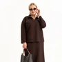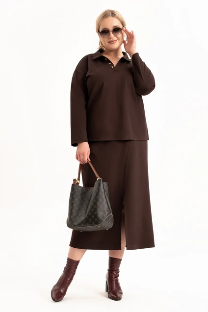 Стильный женский трикотажный костюм с юбкой станет настоящей находкой для каждой современной модницы. Удобный и практичный женский костюм оверсайз прекрасно подходит для любого типа фигуры, помогая выгодно скрыть недостатки и подчеркнуть достоинства. Приталенный силуэт трикотажной юбки с высокой посадкой, а также свободный крой свитшота сделает образ лаконичным, поможет всегда оставаться в тренде. Неповторимый стиль и удивительный комфорт умело сочетаются в этом женском костюме с юбкой. Женский костюм отлично подходит для повседневной носки, а также для более формальных ситуаций. Этот костюм идеально подходит как для офисной среды, так и для обеденного свидания или других повседневных мероприятий. Вы сможете легко создать разнообразные образы, изменяя аксессуары и обувь. В нем каждая сможет чувствовать себя комфортно. Удобный крой позволит не сковывать движения, при этом полноценно облегая силуэт женской фигуры. Костюм выполнен с учетом последних модных тенденций, что обеспечивает его стильный дизайн. Высококачественный трикотажный материал »лакоста», используемый при создании, придает костюму особую мягкость и удобство во время носки. Юбка с разрезом по цетру переднего полотнища и боковыми карманами добавляет нотку женственности и элегантности к образу. Горловина свитшота V-образная с обработанными планками и воротником, с боковыми разрезами и пришивным декором. Свитшот оверсайз отличается не только свободным кроем, но и имеет спущенную линию рукава, выгодно скрывая мельчайшие недостатки женской фигуры.