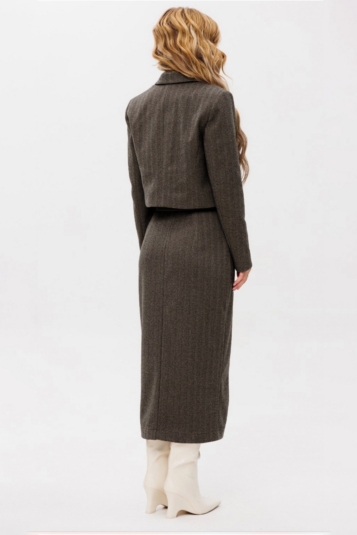 Костюм с юбкой 2100 Ambera style подчеркнет вашу индивидуальность благодаря коллекции бренда Ambera. Изготовленный из уникального сочетания полиэстера, кашемира и шерсти с добавлением спандекса, он обеспечивает комфорт и износостойкость. Укороченный жакет полуприлегающего силуэта с двухбортной застёжкой и нагрудными вытачками придаёт элегантность и практичность. Прямая миди юбка на притачном поясе оснащена боковыми карманами и застёгивается на пуговицу и молнию, что позволяет легко создать деловой и стильный образ. Этот костюм универсален и подходит для офиса или городских прогулок весной и осенью. Его серый цвет делает его подходящим для любой ситуации.