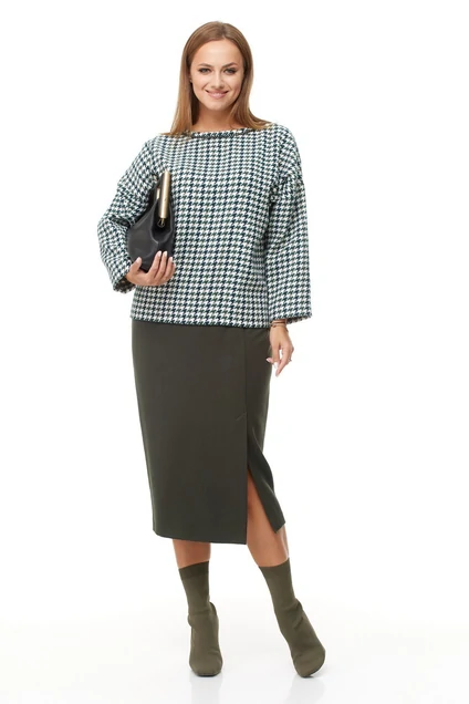Костюм с юбкой 1042-1 зеленый гусиная лапка Anastasia