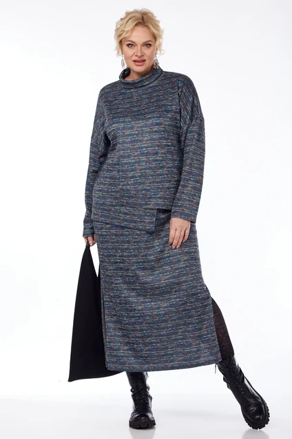 Костюм с юбкой 1050-4 меланж джинс Anastasia