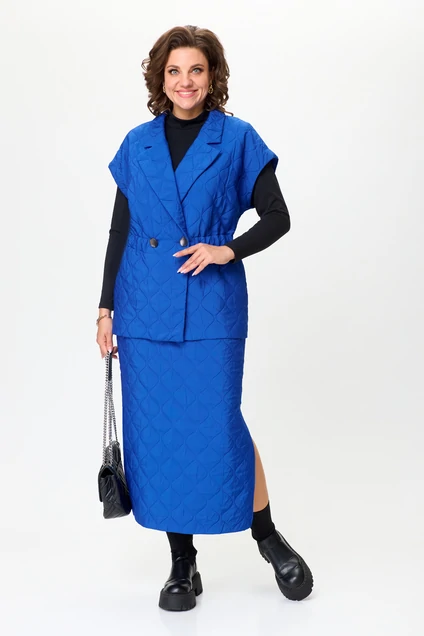 Бренд белорусской женской одежды больших размеров Anastasia представляет костюм двойку. Костюм женский 2-х предметный (жилет, юбка) из стеганной ткани станет отличным дополнением к Вашему гардеробу. Подойдет для повседневной носки (работа, офис, прогулки). Достаточно дополнить его соответствующими предметами из вашего гардероба: блузка, майка, водолазка, гольф, свитер, лонгслив, свитшот. Жилет прямого силуэта, со спущенным плечом. Может быть самостоятельным элементом гордерба. Застежка двухбортная, воротник английского типа. По полочке идет грудовая выточка из бокового шва, по спинке средний шов, по талии кулиска-резинка, по бокам -карманы. Юбка-макси, зауженная к низу, по бокам разрезы. Пояс отрезной на резинке. Благодаря своему крою и фасону костюм подчеркивает женственные формы и скрывает то, что должно быть незаметным. Это повседневный вариант на каждый день для занятий в школе или для офиса, на работу или на прогулку. Наденьте его на деловую встречу, официальное мероприятие, школьное торжество. Модель подойдёт для образа в университет или колледж. Этот предмет одежды подчеркнет вашу элегантность и сделает образ более женственным. Одежда для женщин больших размеров и не только, по отличным ценам и высокого качества - это Anastasia! Добавляете нас в любимые бренды и вы всегда будете в курсе всех акций и новинок! Новинка осень 2024! Хороших покупок от «Анастасия»Длина по спинке (48-52)-70см, (54-58)-71 см. Длина юбки (48-58) - 88см.