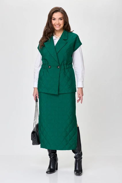 Костюм с юбкой 1171-1 зеленый Anastasia