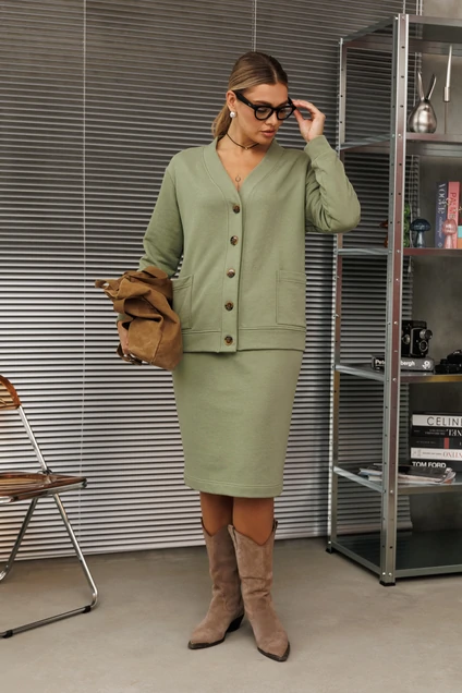 Шикарный трикотажный женский костюм от бренда Anastasia, идеальный для любого случая. Этот костюм сочетает в себе элегантность и комфорт, что делает его подходящим как для деловых встреч или прогулок. Комплект состоит из кардигана и юбки. Кардиган прямого силуэта со спущенным плечом. По низу спинки и полочки идет отрезной пояс. Застежка- планка с пуговицами. По полочке идут накладные карманы. По низу рукава- манжет. Юбка зауженная к низу по спинке идет разрез, пояс отрезной на резинке. Стильный костюм отлично подойдет для долгих прогулок или для работы, для офиса. Юбка -миди создает чувственный образ благодаря своей длине, придающей женственность и элегантность вашему образу. Отдельный части костюма легко будут сочетаться с вещами из Вашего гардероба. Модель можно отнести к стилю спортивный кэжуал, оверсайз, спортивный шик. Костюм можно носить с кроссовками, высокими сапогами или ботинками. Обязательно добавьте наш бренд в избранное и следите за новинками, распродажами, скидками и акциями! Хороших покупок от «Анастасия». Длина (по спинке):(50-54)- 56см, (56-60)-59 см. Длина рукава с манжетой: (50-54)-56см, (56-60)-58 см. Длина юбки: (50-54):-59см, (56-60)-62см.