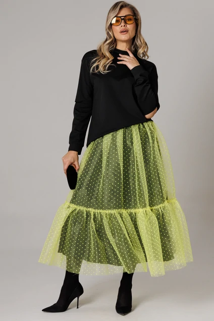 Костюм с юбкой 1298 черный + лимонный Anastasia