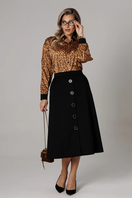 Оригинальный комплект женский 2-х пердментый (блузка, юбка) от бренда Anastasia, идеальный для любого случая. Этот комплект сочетает в себе элегантность и комфорт, что делает его подходящим как для повседновной носки, так и для праздничных мероприятий. Блузка из атласной ткани прямого силуэта со спущенным плечом. По бокам закругленные разрезы. Рукав с запахом и разрезом, на манжете. Застежка – планка на петли и пуговицы. Воротник на отрезной стойке. Стойка и манжета из отделочной ткани. По спинке идет отрезная кокетка. Такой женский офисный стиль можно носить, сочетая с другими вещами гардероба, создавая новые образы. Ткань атласная качественная и очень комфортная. Юбка А-силуэта, длинна миди. По передней части идет застежка-обманка с пуговицами. По бокам карманы. По спинке средний шов, переходящий в застежку молнию. Пояс отрезной . Длина по спинке: (48-52)-70 см, (54-58)-72 см. Длина рукава с манжетой: (48-52)-55 см, (54-58)-57 см. Длина юбки: (48-58)-80 см
