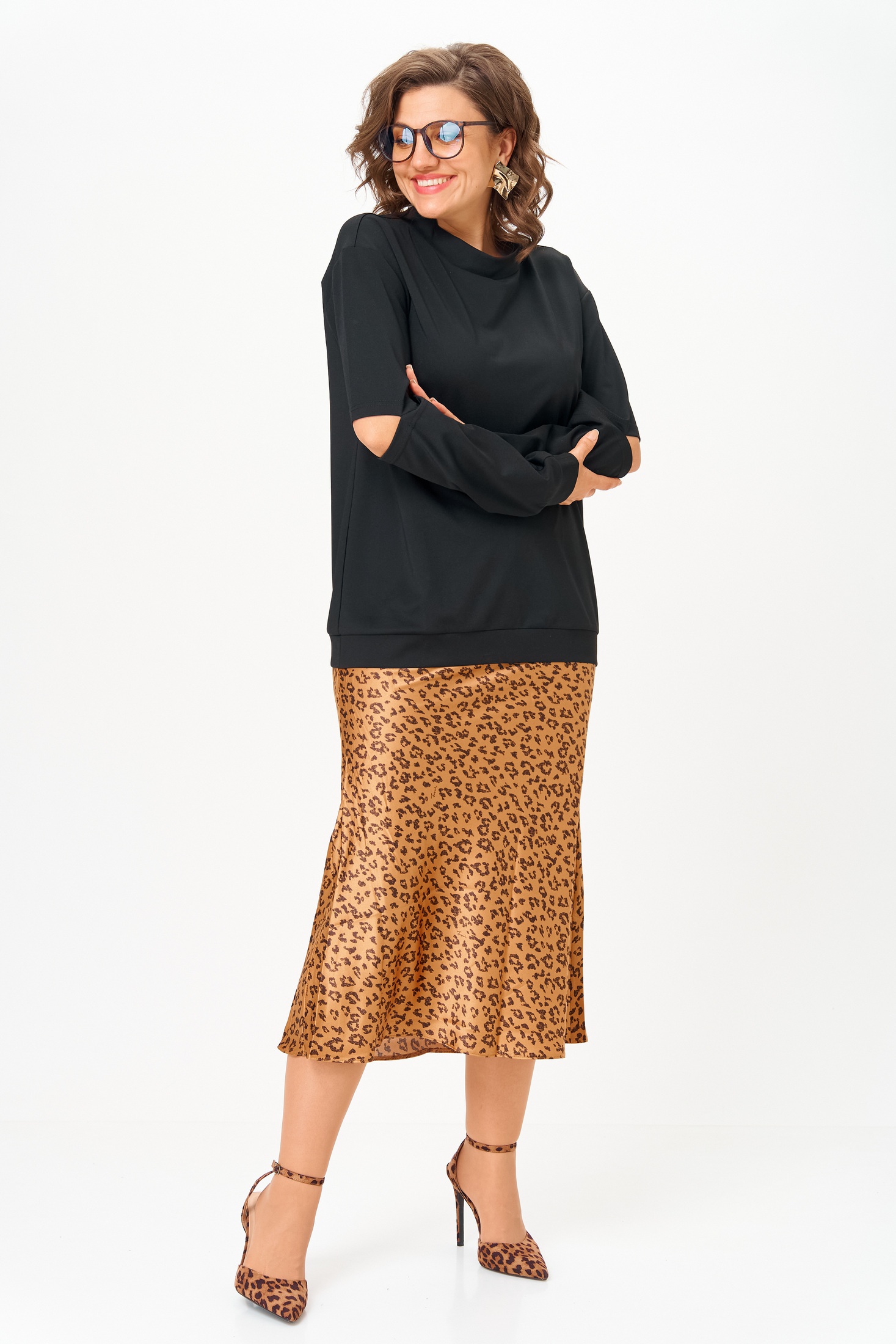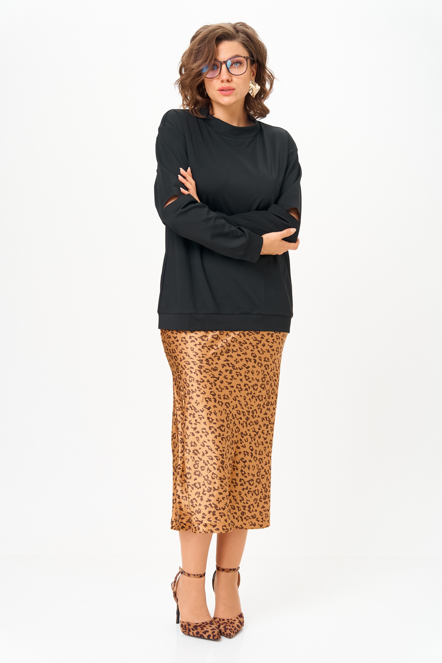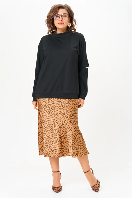Оригинальный женский комплект от бренда Anastasia, идеальный для любого случая. Этот комплект сочетает в себе элегантность и комфорт, что делает его подходящим как для повседневной носки, так и для праздничных мероприятий. Джемпер оверсайз из трикотажного полотна. Прямого силуэта со спущенным плечом. Воротник-стойка. По рукаву идет подрез с разрезом. Низ рукава и низ джемпера - на манжете. Джемпер лекго сочетается с любыми низами: брюки, джинсы, юбка. Юбка из атласа - идеальный выбор для изысканного гардероба! Этот миди-силуэт подойдет как для офисного стиля, так и для вечерних выходов. Благодаря резинке на талии, эта юбка подходит беременным. Шелковый атлас придает изделию шик и дорогой вид. Фасон универсален, а использование резинки на поясе повышает комфортность носки, позволяя юбке адаптироваться под индивидуальные особенности фигуры. Юбку легко сочетать с различными верхами: топ, блузка, футболка, кружевной жакет, свитер или жакет из тексиля - все это позволит создавать различные образы на разные случаи. Длина по спинке 68см. Длина рукава (с манжетой): 60см. Длина юбки: 91 см