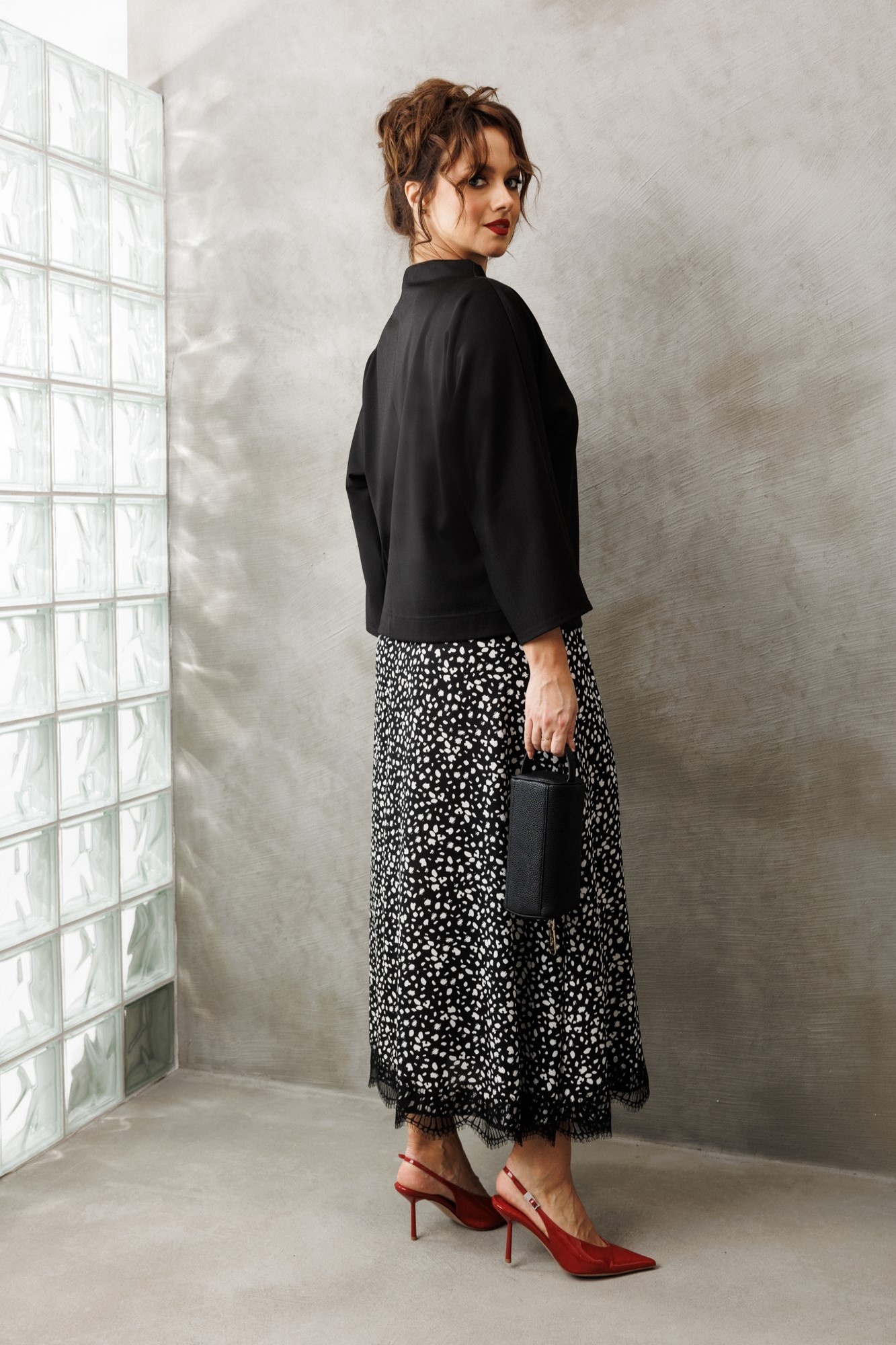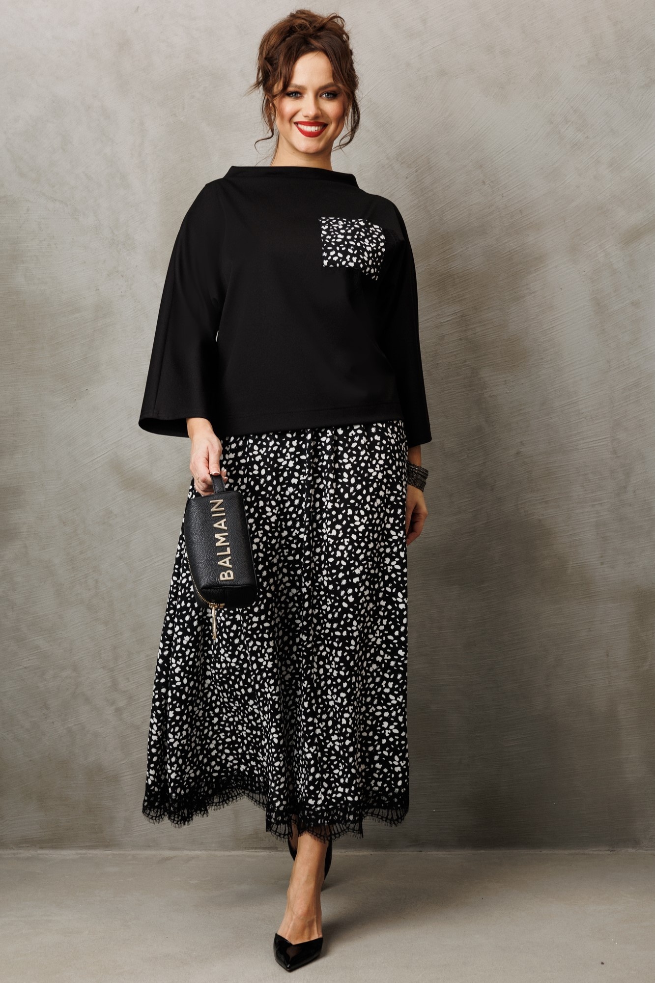 Представляем вашему вниманию стильный комплект, который станет настоящим маст-хэвом в вашем гардеробе. Этот комплект станет вашим верным спутником в любой ситуации, добавляя нотки элегантности и шарма в вашу повседневную жизнь. Комплект женский 2-х предметный (блузка, юбка). Блузка прямого силуэта, из трикотажного полотна, со спущенным плечом станет незаменимой вещью в вашем гардеробе. Рукав "летучая мышь", 3/4 длины. Горловина цельнокроенная в виде стойки. В качестве декора - кармашек на груди в цвет юбки. Юбка расширенная к низу. По низу - кружево. Пояс на резинке. Для повседневного ношения отлично подойдёт будущим мамам и беременным. Мягкая резинка в поясе не давит и идеально держится на любой талии. Модель легкой миди в стиле бохо и кэжуал подходит на любую фигуру и отлично вписывается в базовый гардероб для повседневного ношения на работу в офис стиле оверсайз. Отдельные части крмлекта будут легко сочитаться с вещеми из вашего гардероба. Внимание: рекомендуем использовать антистатик в случае, если юбка электризуется. Длина блузки(по спинке): (50-60)-61 см. Длина рукава от головины: (50-60) -56см. Длина юбки - 85см.