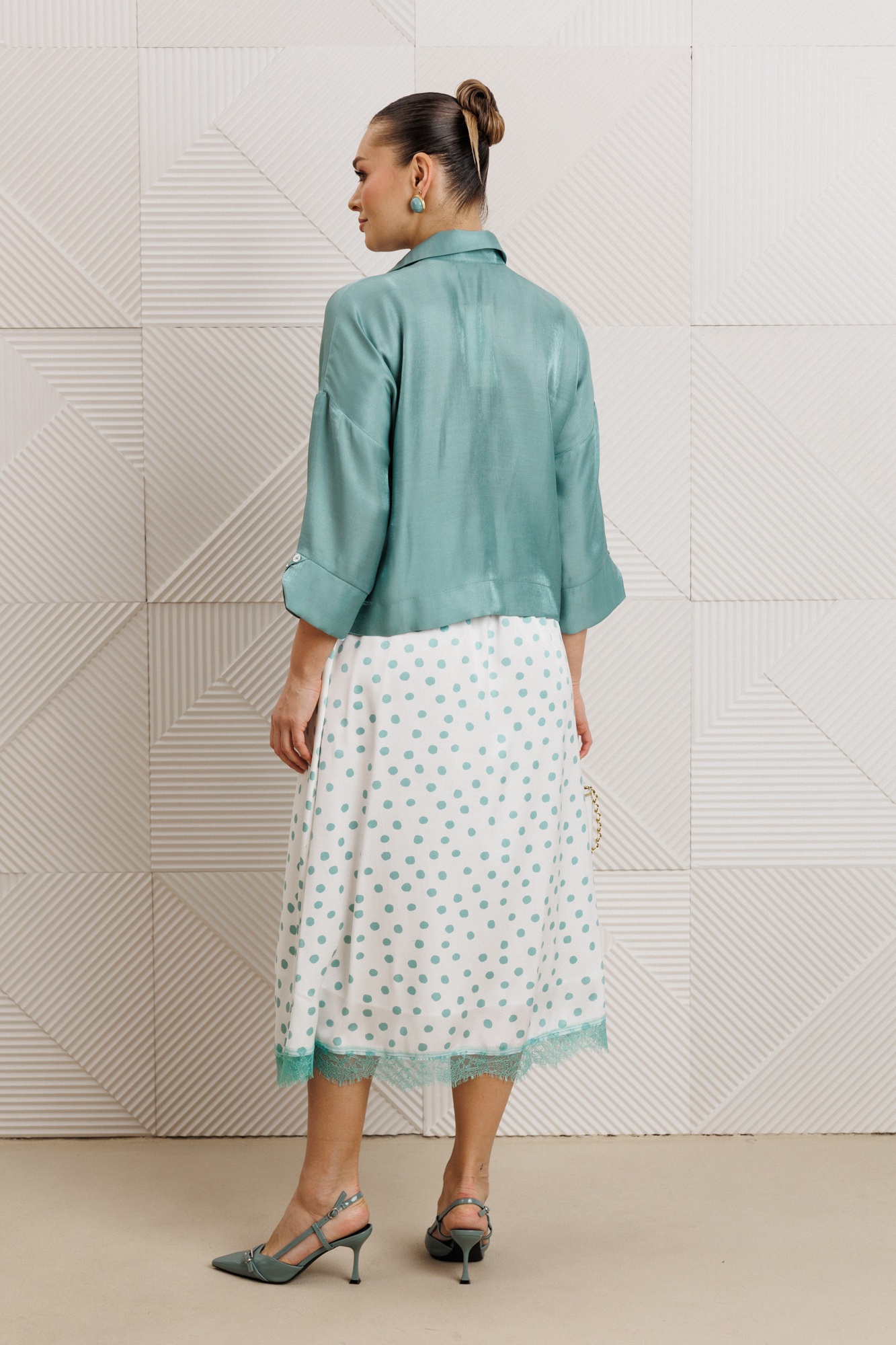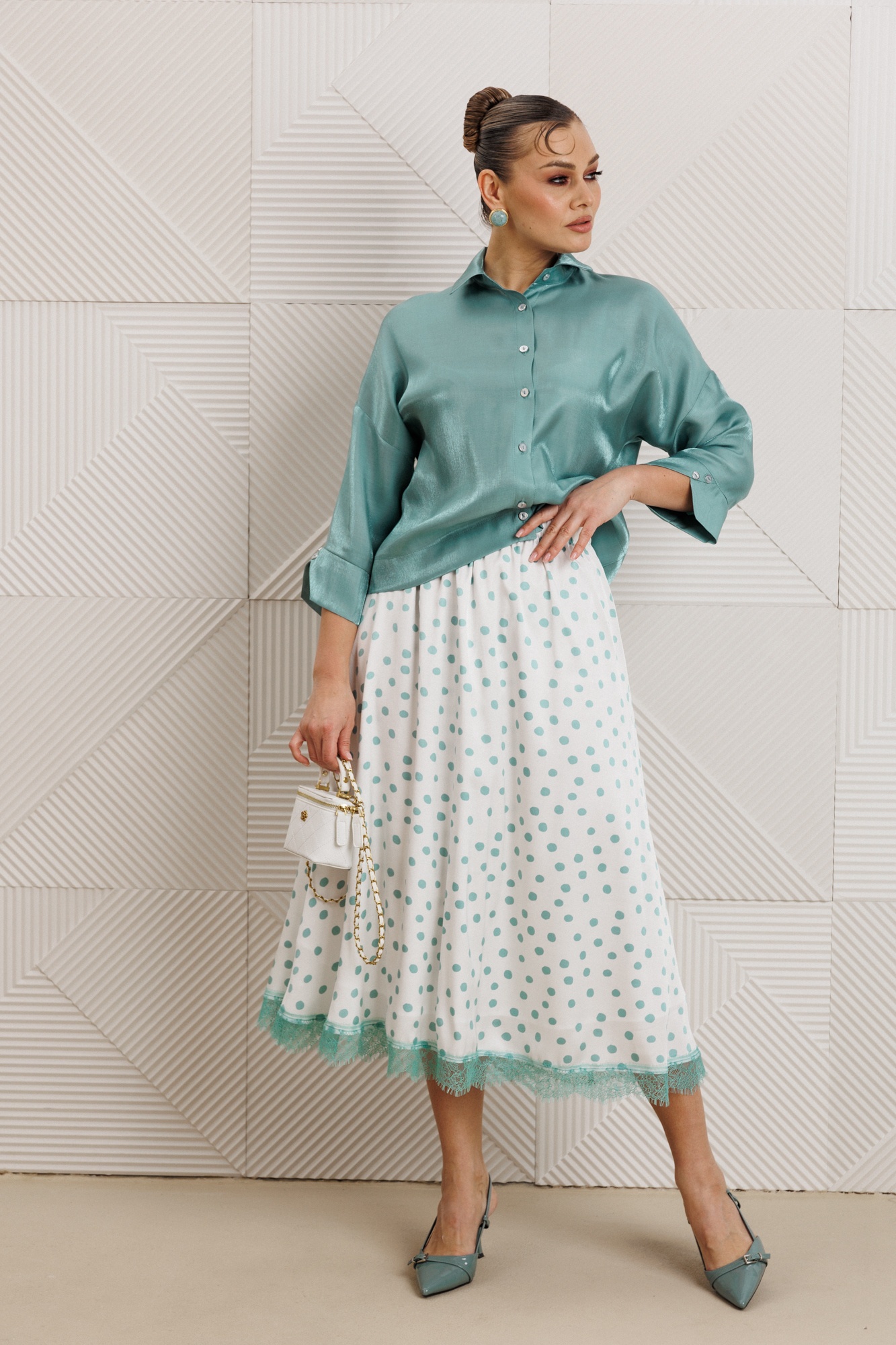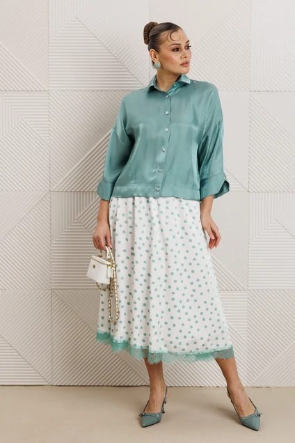 Костюм с юбкой 1322 мята Anastasia идеально подходит для стильного женственного образа. Коллекция бренда Anastasia сочетает в себе комфорт и уникальные дизайнерские решения. Блузка из вискозной ткани с легким блеском подчеркивает утонченный стиль, а юбка с кружевной отделкой добавляет романтичности. Мятный цвет костюма освежает образ, а фасон с расширенной юбкой и блузкой со спущенным плечом придает легкость силуету. Комплект подходит для тёплого сезона и повседневных прогулок. Длина блузки составляет 53-55 см, а длина юбки – 91 см, что делает его идеальным выбором для любого типа фигуры.