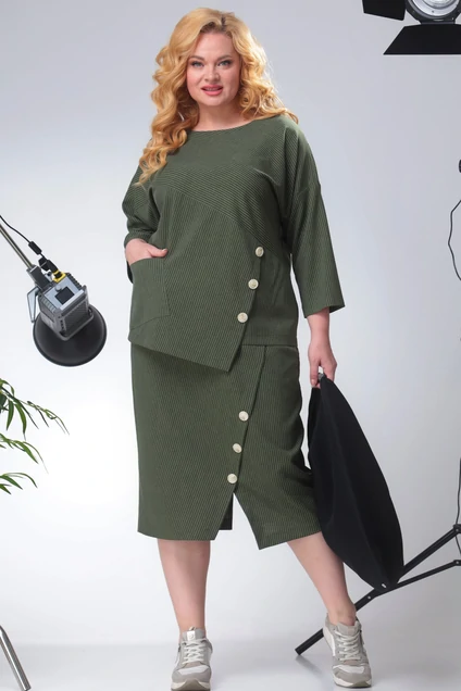 Костюм с юбкой 824 олива Anastasia